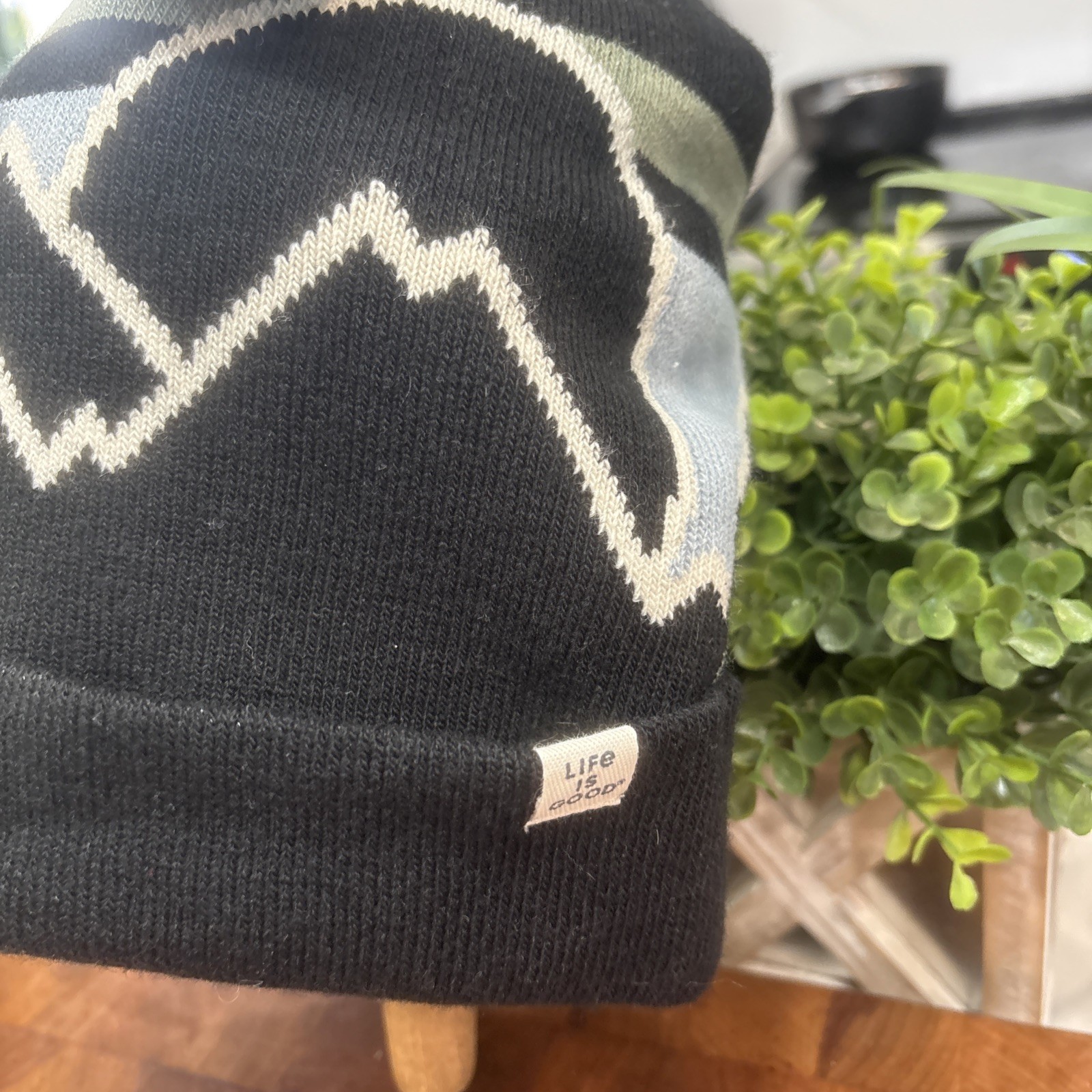 как выглядит Life is Good Adult Unisex Stripe Mountains So Chill Beanie, True Black фото