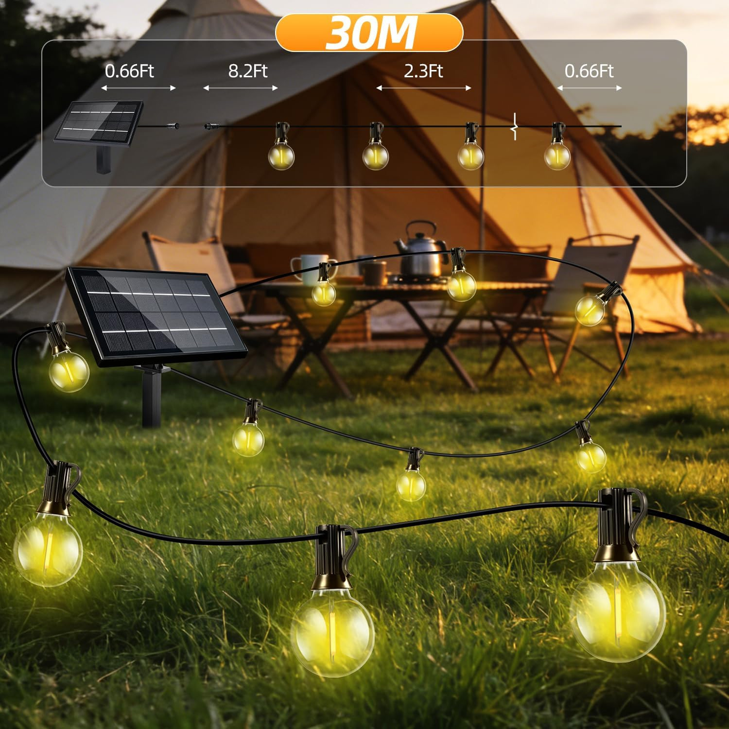100FT Solar Lights Outdoor Waterproof: G40 30M Shatterproof Bulbs Patio Lights -