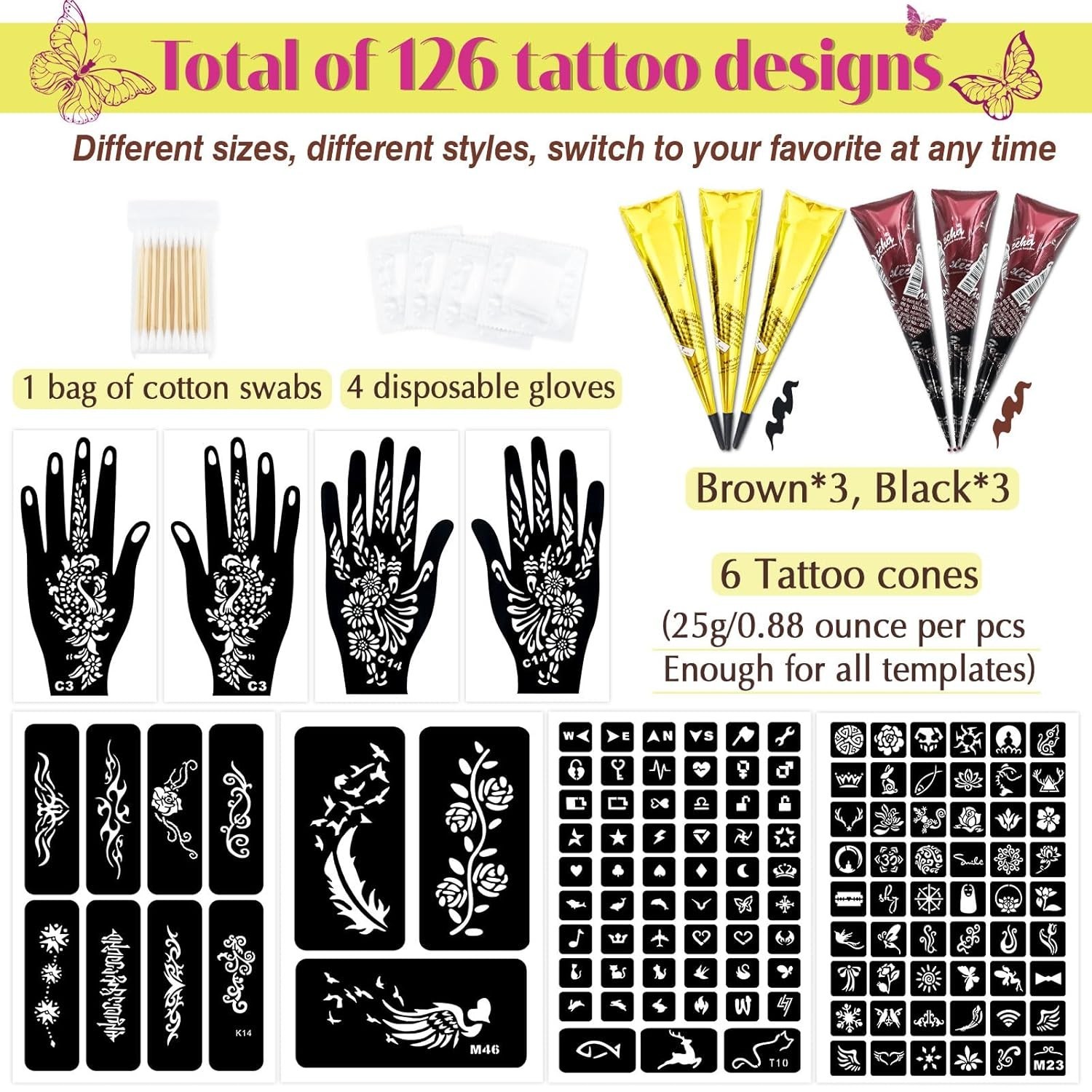 126 PCS Temporary Tattoos Stencils Kit,Temporary Tattoos Kit - 6 Pcs 2 ColorB...