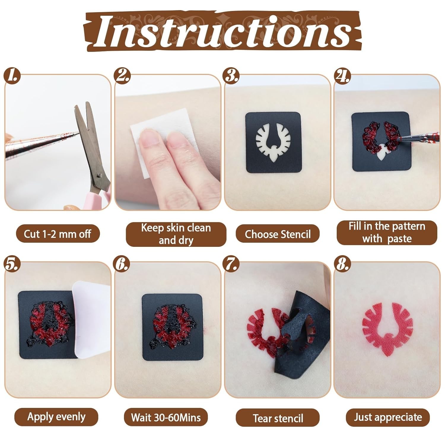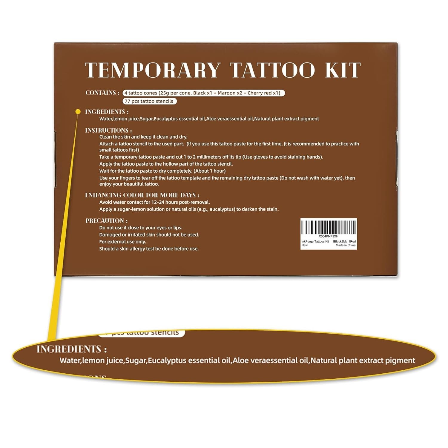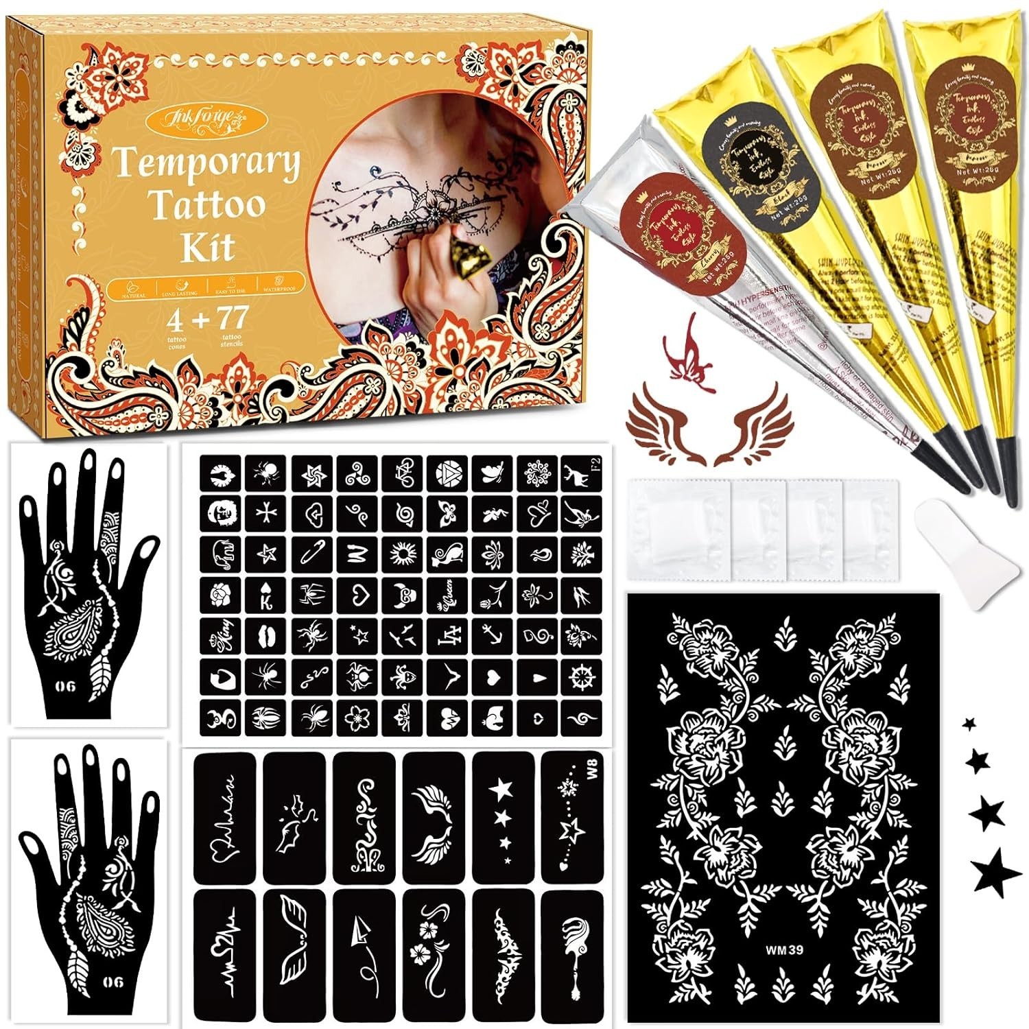 Temporary Stencils Tattoos Kit, 4 Pcs Tattoo Cones 3 Color 1 Black 2 Maroon 1...