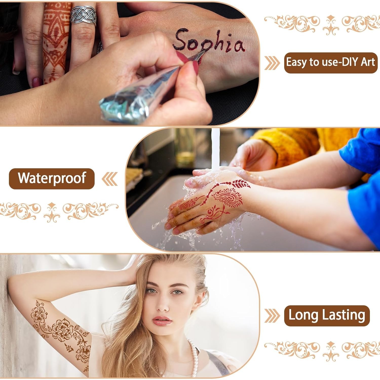 как выглядит Temporary Stencils Tattoos Kit, 4 Pcs Tattoo Cones 3 Color 1 Black 2 Maroon 1... фото