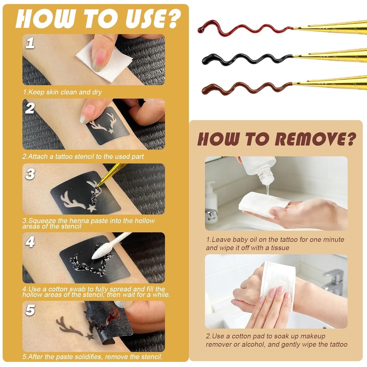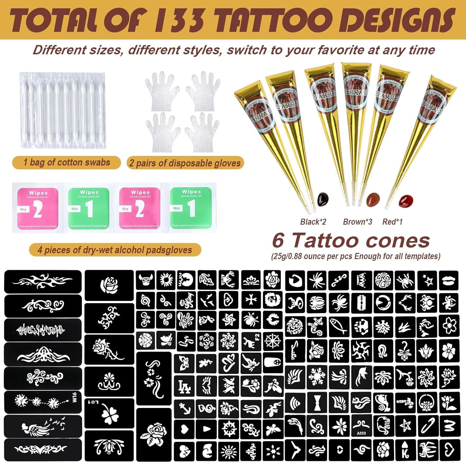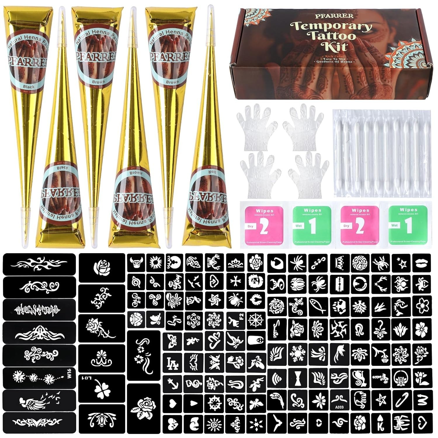 Temporary Tattoos Stencils Kit,Temporary Tattoos Kit - 6 Pcs 3 Color3 Brown 2...