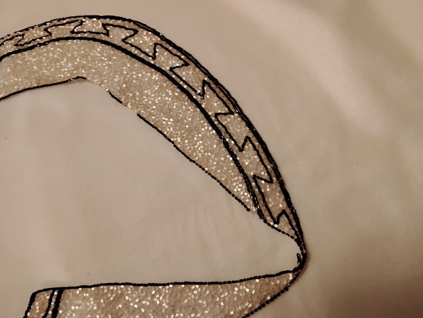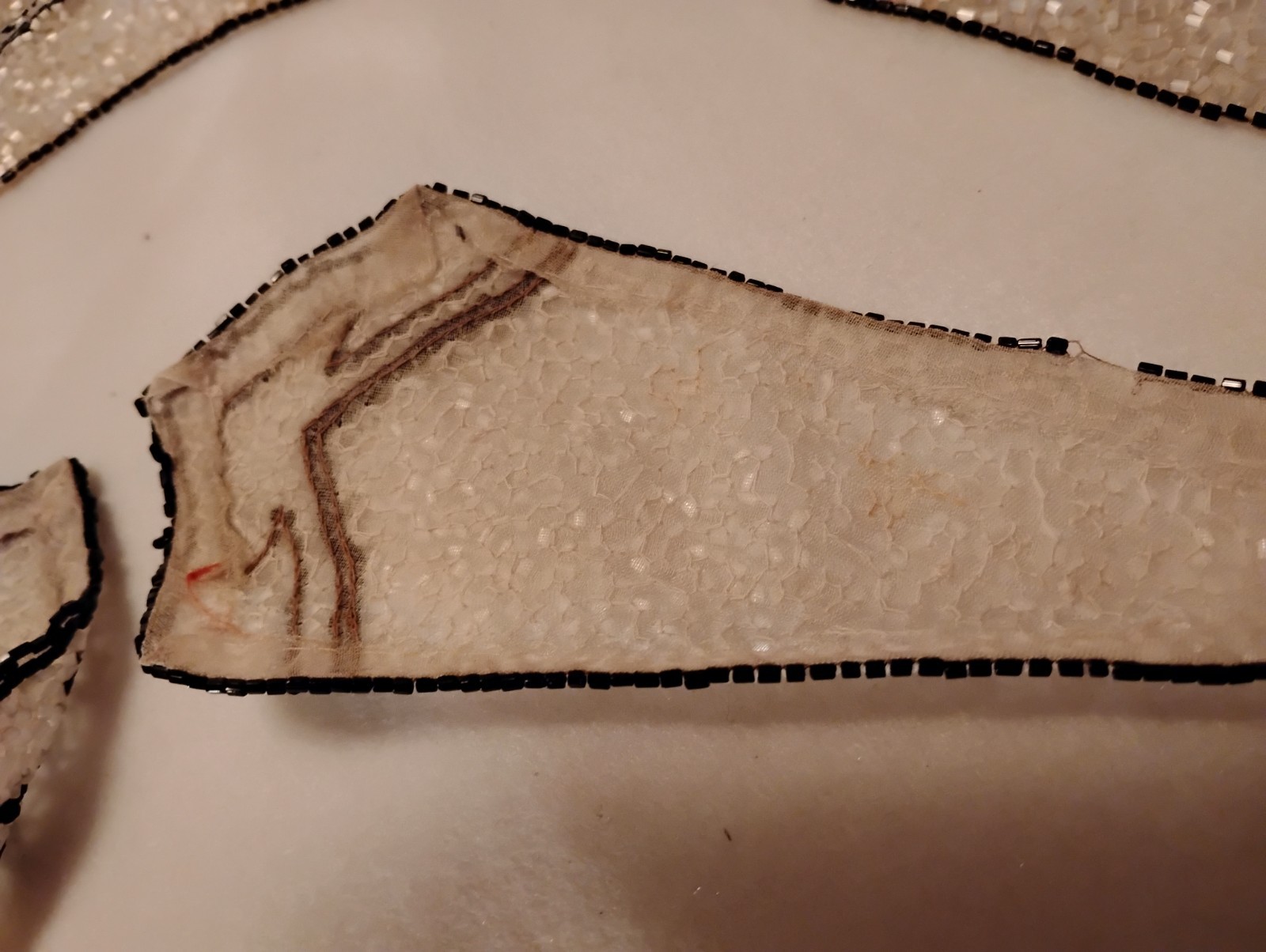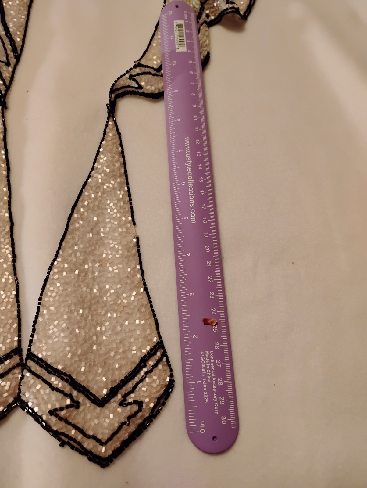 Antique Art Deco Bugle Glass Beads Hand Sewn Beads Black White Collar w/ Tie