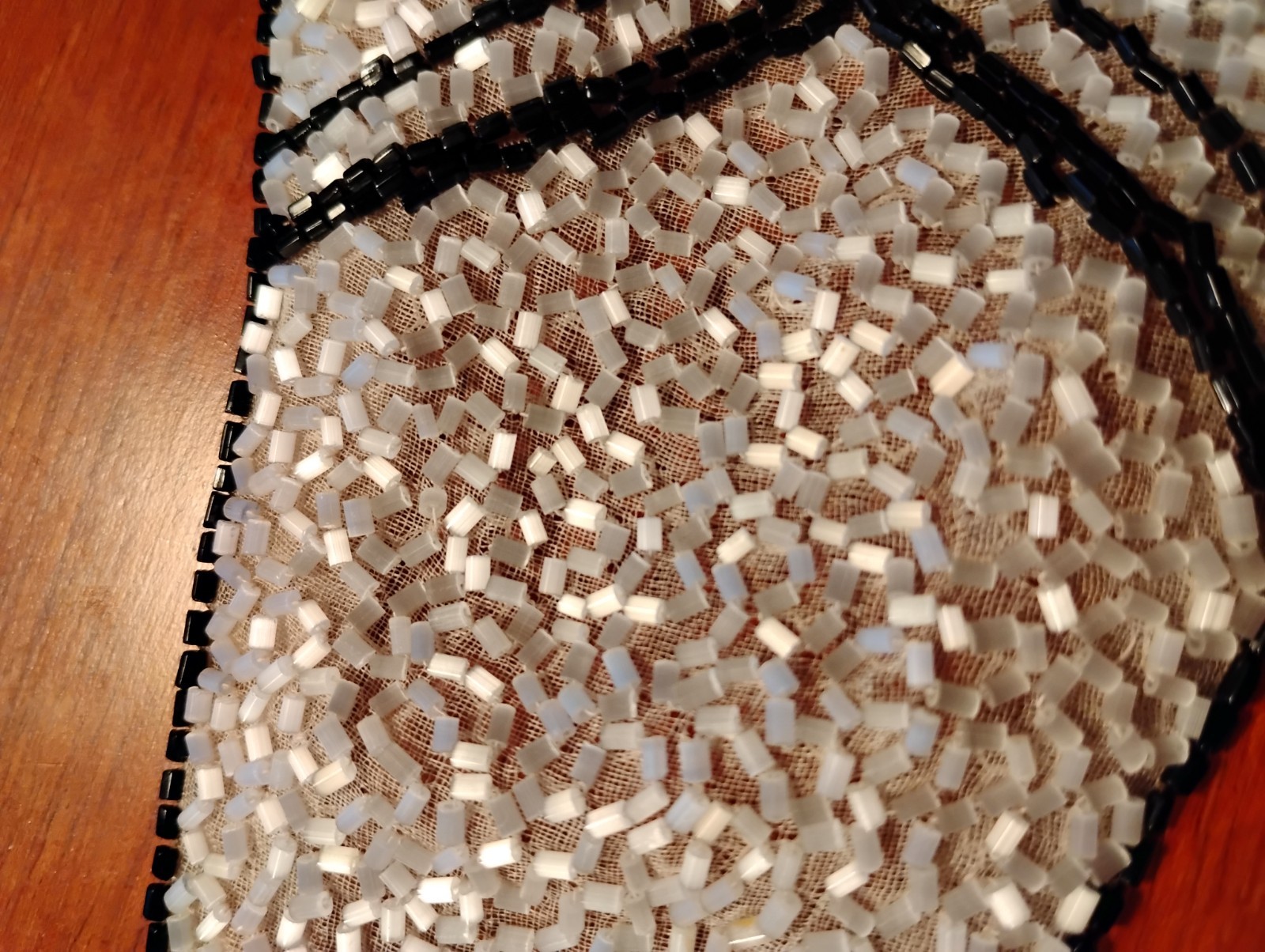 как выглядит Antique Art Deco Bugle Glass Beads Hand Sewn Beads Black White Collar w/ Tie фото