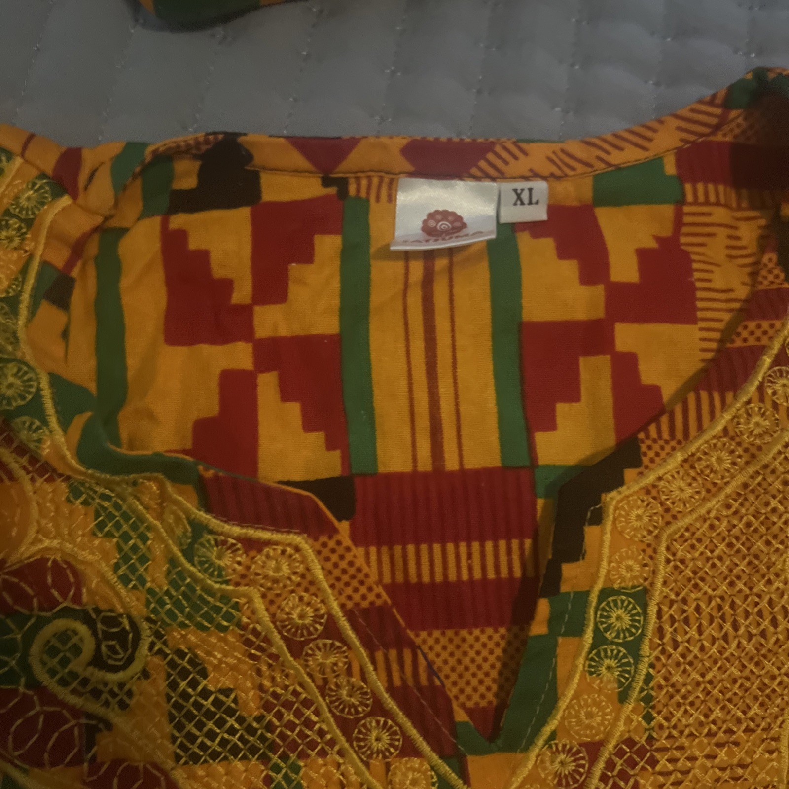 как выглядит Men s African Embroidered Top Pant Set w/ Hat  2pc Outfit Size XL фото