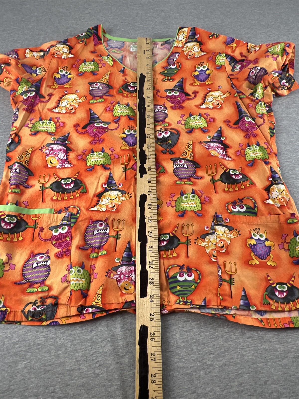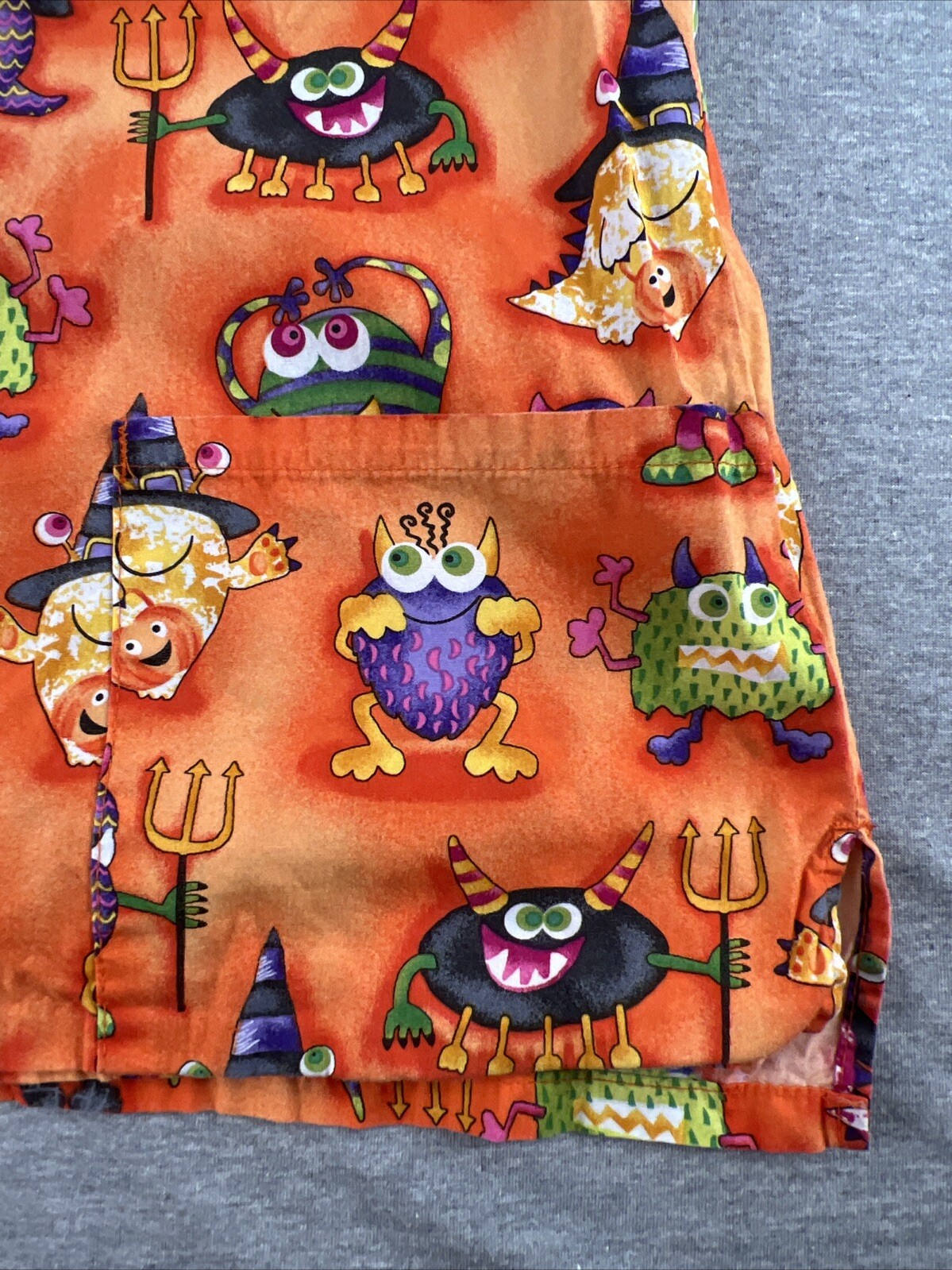 bio Bring It On Large Halloween Scrub Top Orange Devils Witches