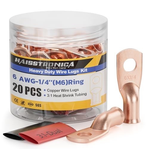 10pcs Heavy Duty 6 AWG Battery Cable Lugs, Copper Wire Connectors Heat Shrink