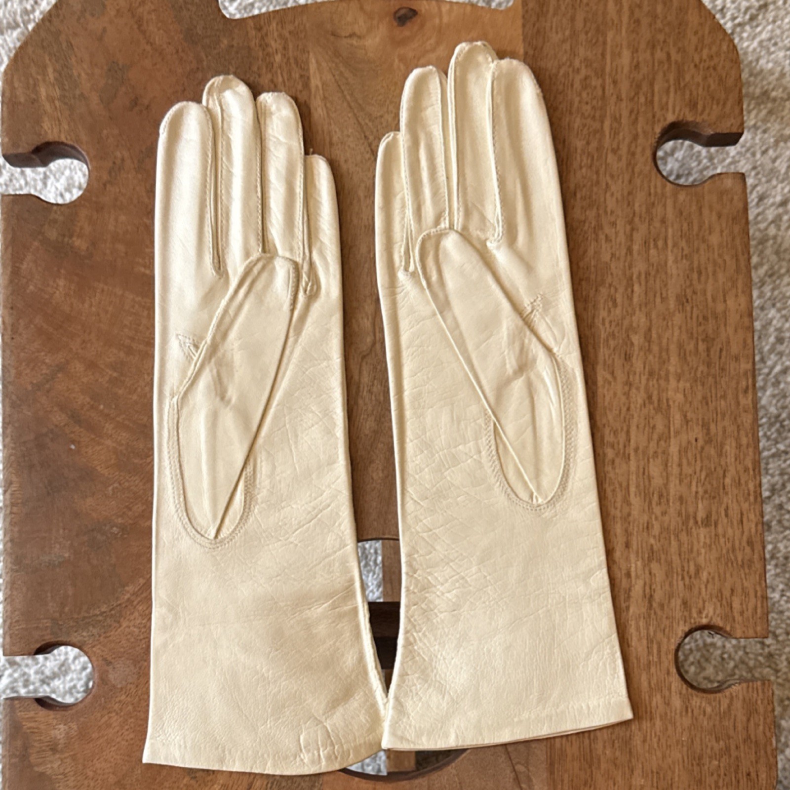 как выглядит Vintage Womens Ivory Kid Leather Gloves Size 6.5, wrist length фото
