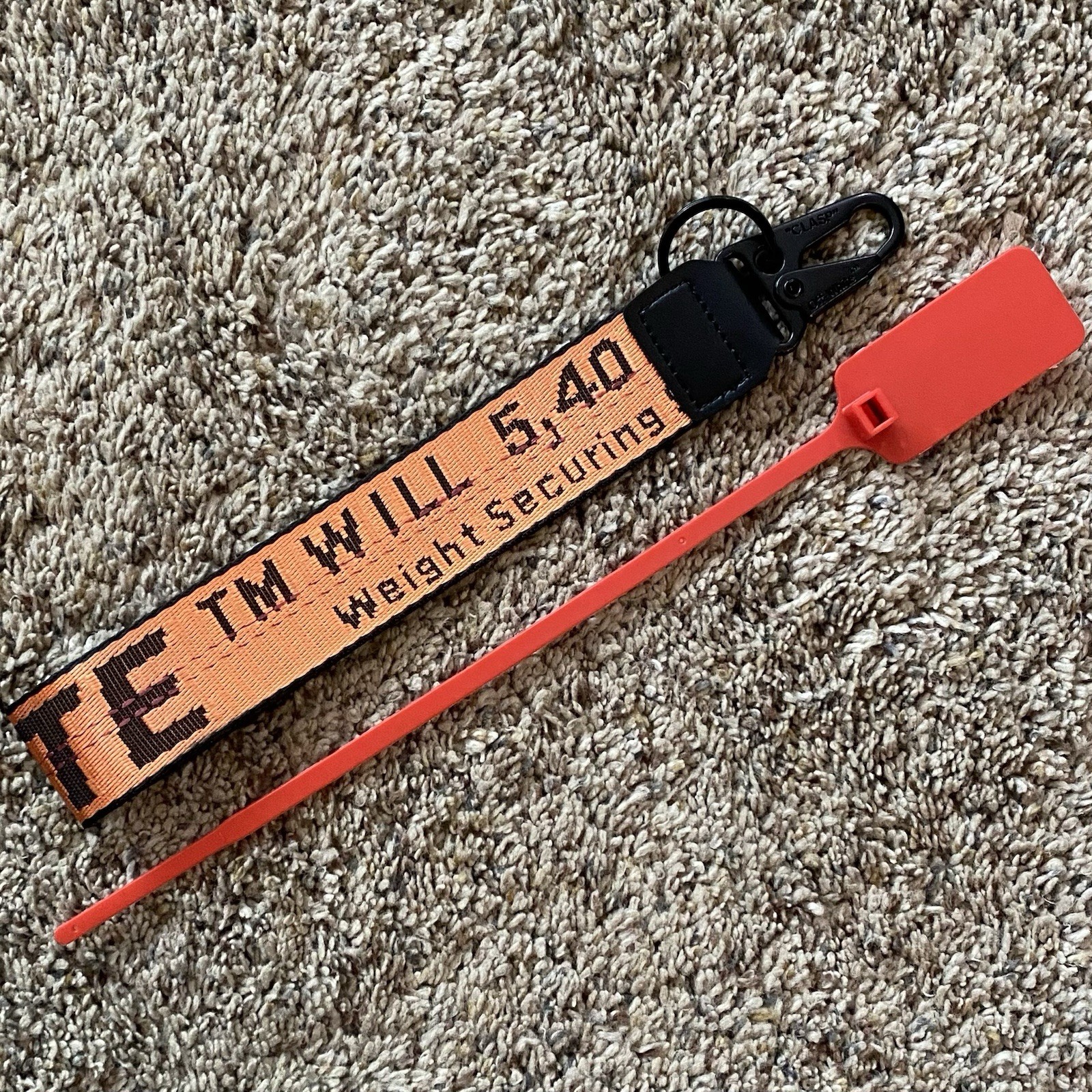 OFF-WHITE Lanyard Keychain Industrial Orange W/ Black Letters Red Zip Tie New