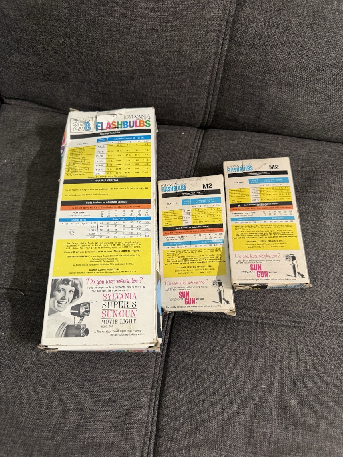 Vintage 4 Boxes Sylvania Blue Dot Flash Bulbs M2B Big Box AG1