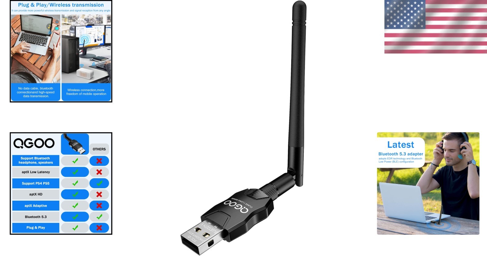 как выглядит USB Bluetooth 5.3 Adapter: Plug Play Long Range Dongle for PCs and Laptops фото