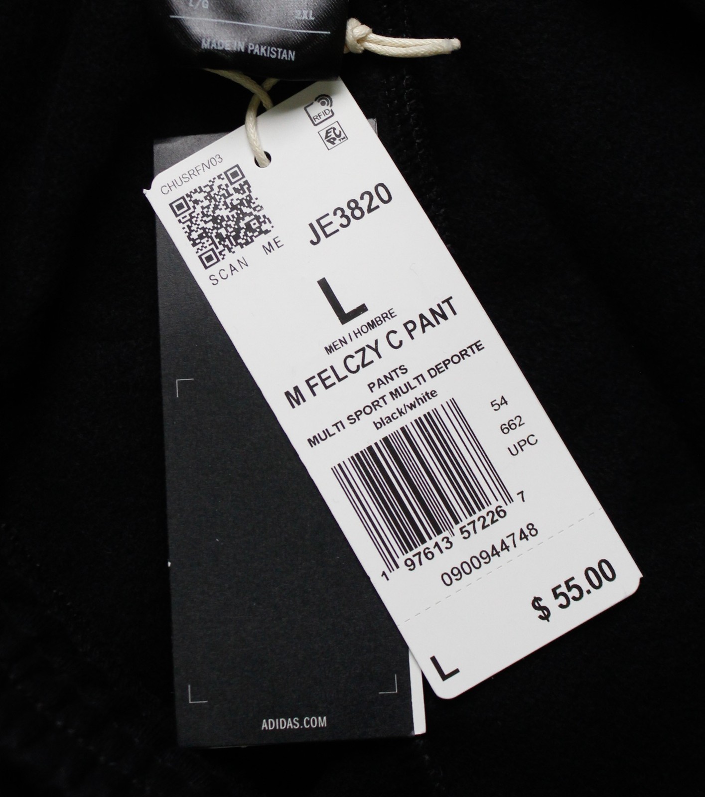 Adidas Men's Pull-On Essentials Fleece Cargo Pants AP2 Black/White Large NWT
