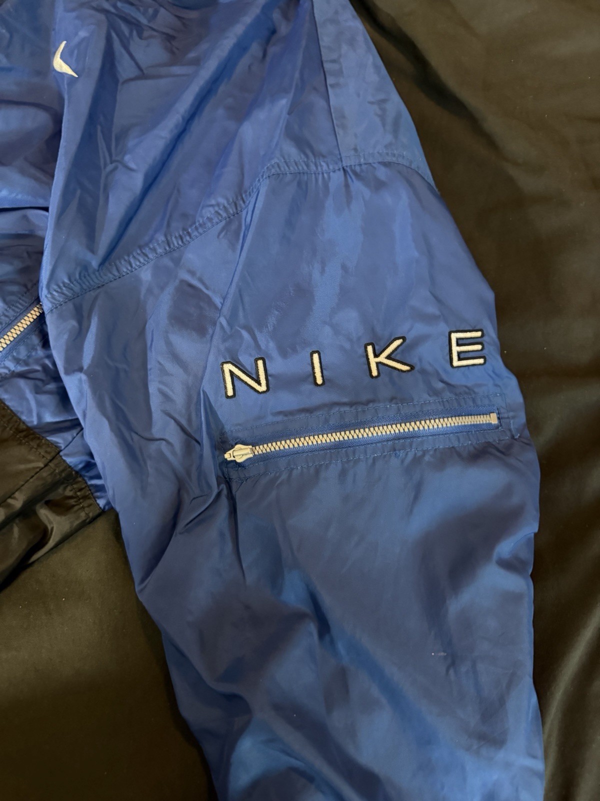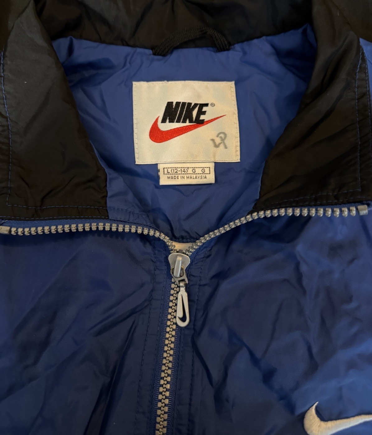 Vintage Nike kids Windbreaker Jacket Blue Black White Full Zip Size L