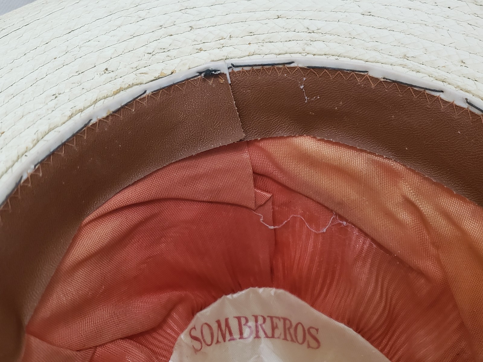 Vintage Calidad RASA Natural Ivory Straw Leather Band Sombrero Hat Mexico Theme