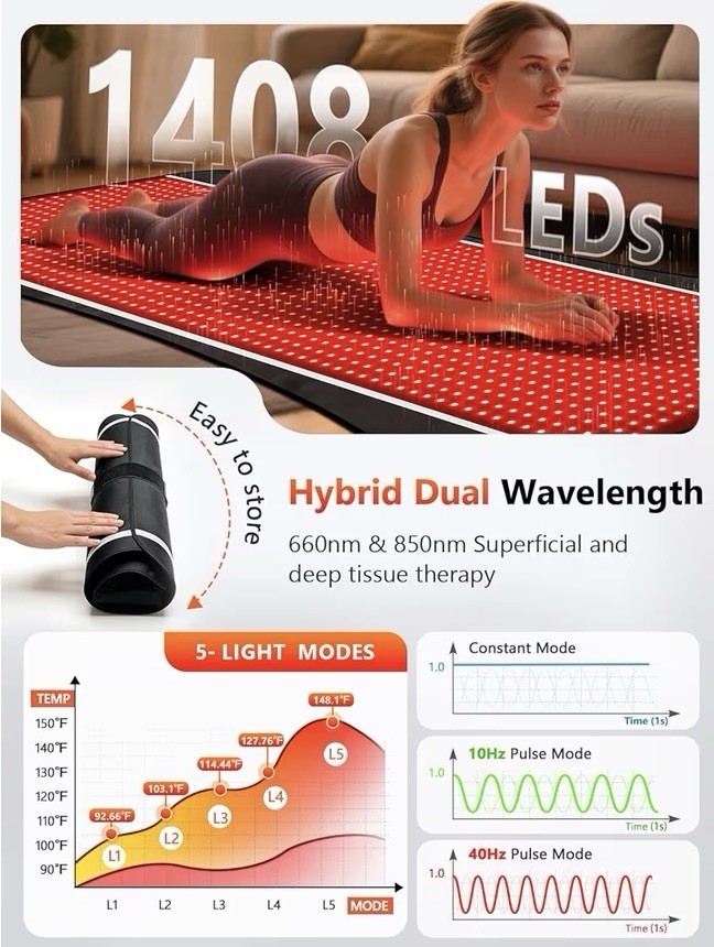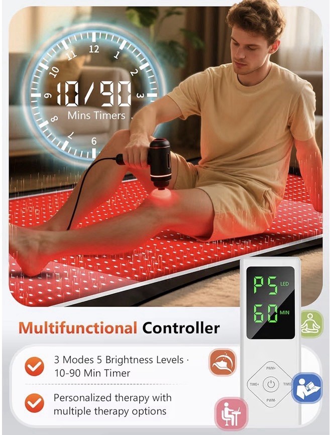 77.6 x 36 Red Light Therapy Mat for Body, 1408 LEDs Timer Remote