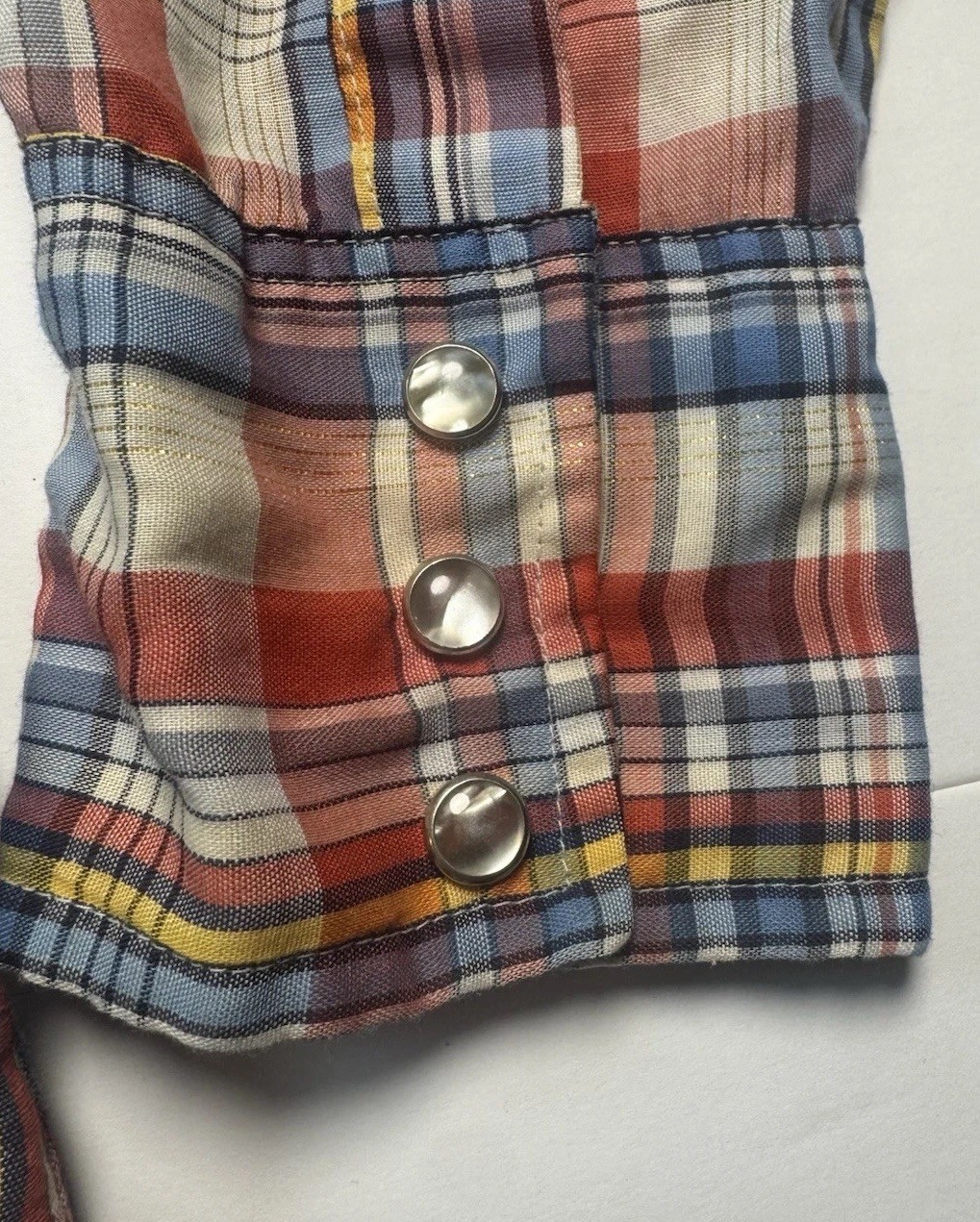 как выглядит VTG 70s Wrangler Pearl Snap Western Shirt Mens USA Made Long Tail Plaid 16.5 34 фото