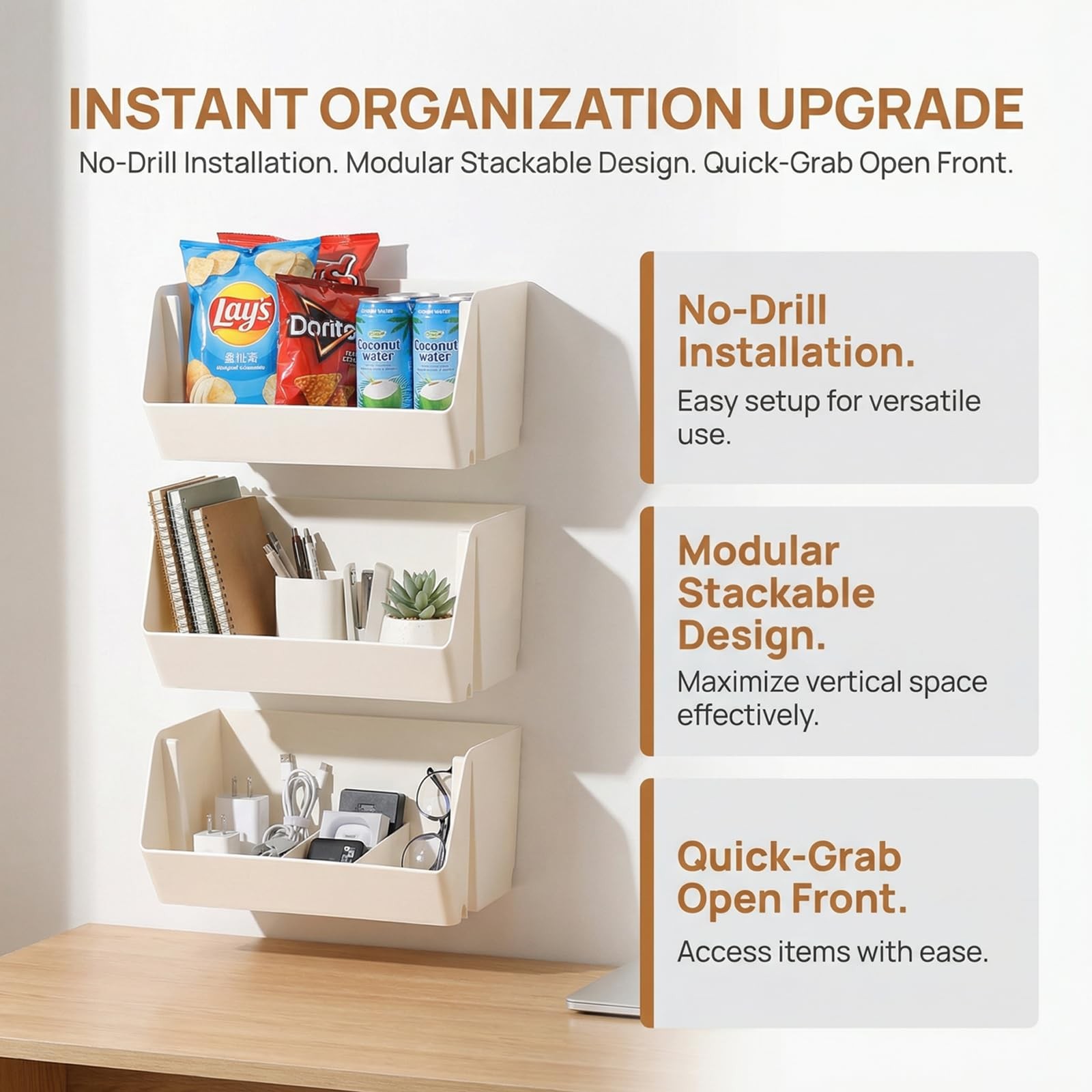 Wall Mounted Storage Organizer Bins, Shower Caddy Kitchen Shelf Floating, Spa...