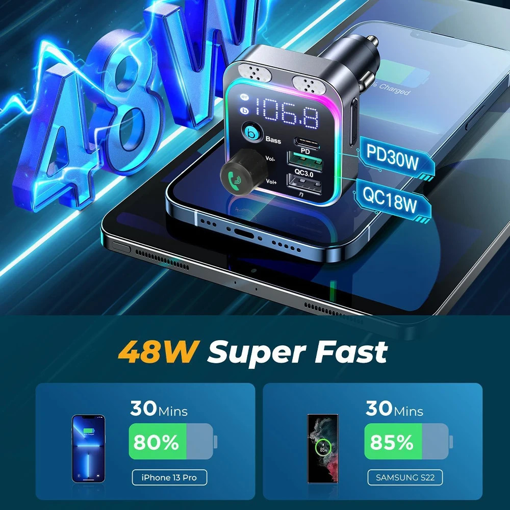Car Bluetooth FM Transmitter Car Charger Digital Display Adapter Bluetooth 5.0