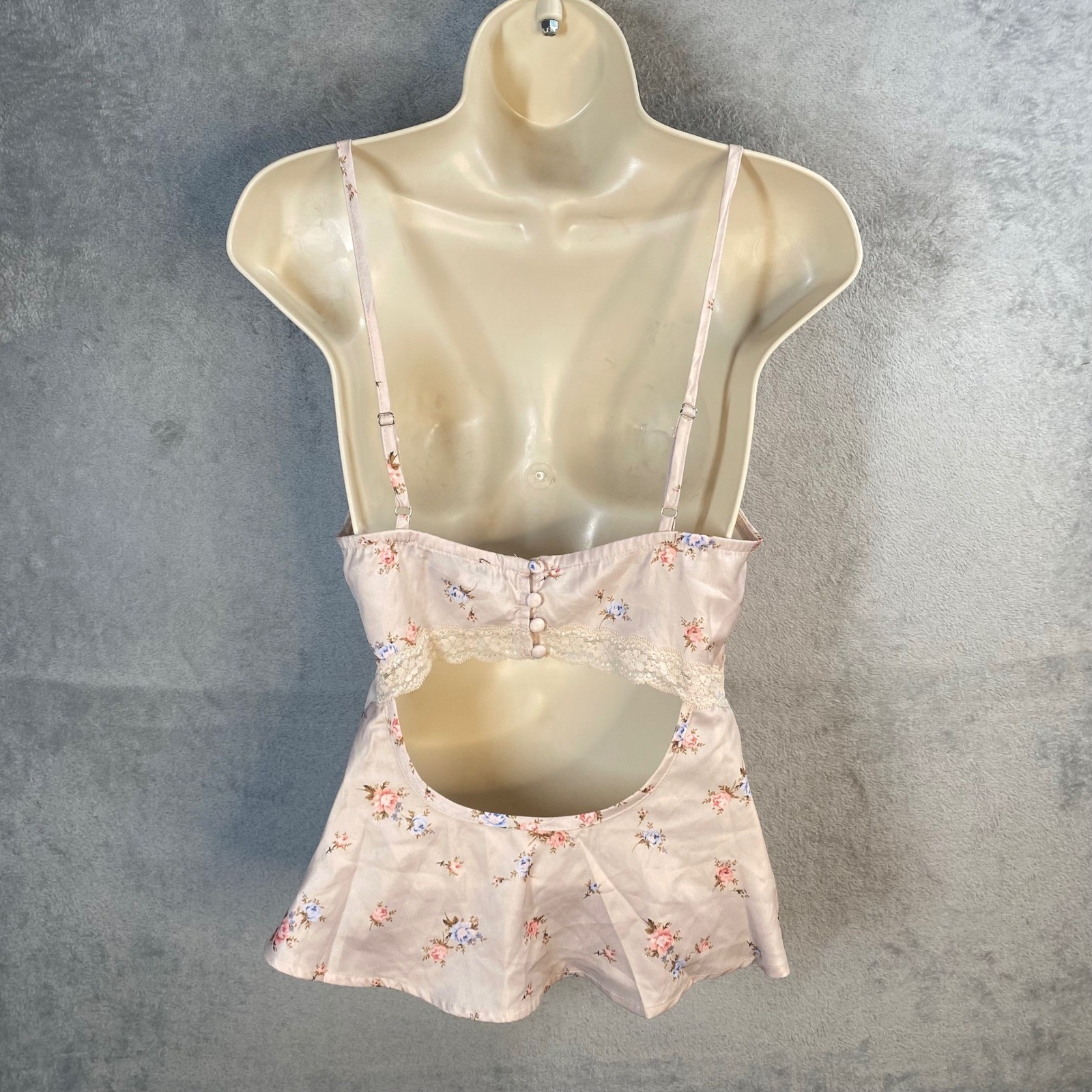 Y2k Floral Lace Trim Babydoll Cami Top Size Small Coquette Cottagecore Fairy