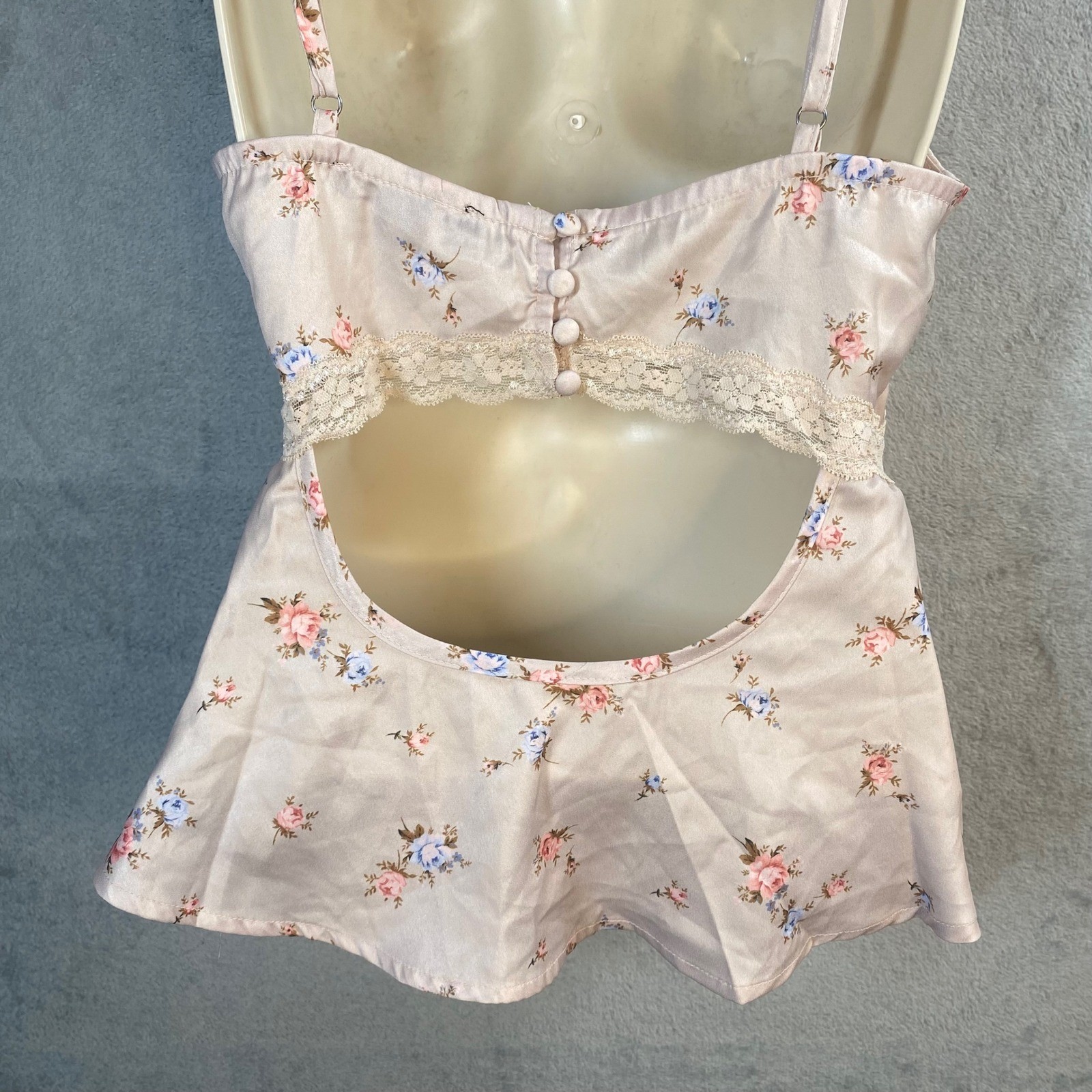 как выглядит Y2k Floral Lace Trim Babydoll Cami Top Size Small Coquette Cottagecore Fairy фото