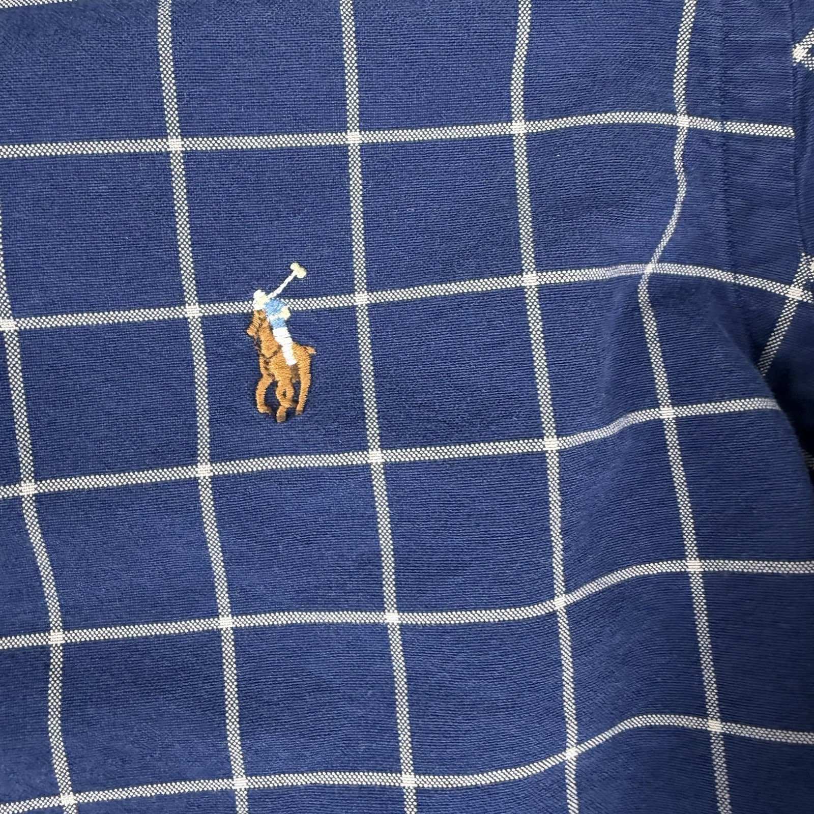 как выглядит Polo Ralph Lauren Shirt Men s Large Blue Navy Windowpane Plaid Pony Classic Fit фото