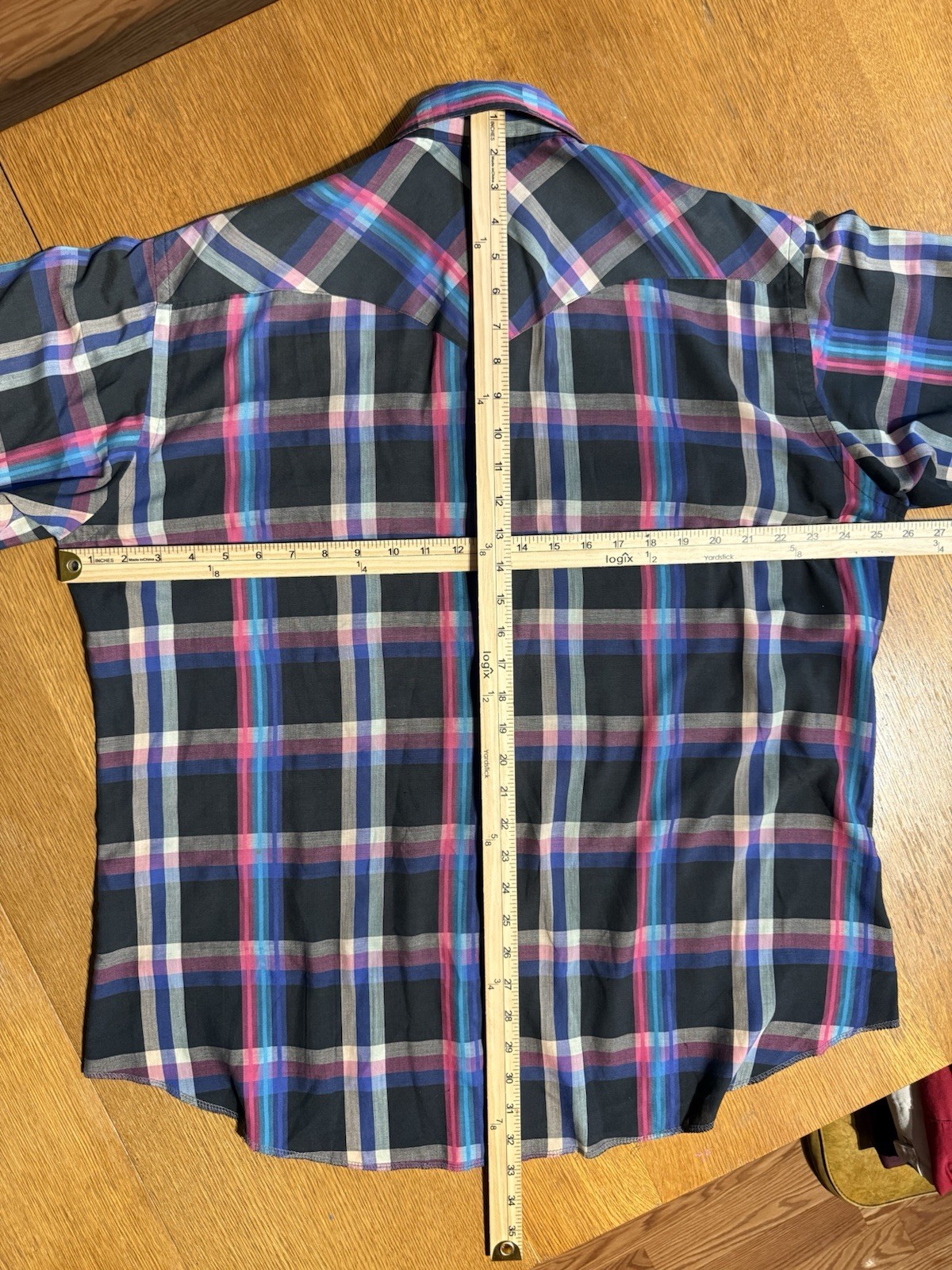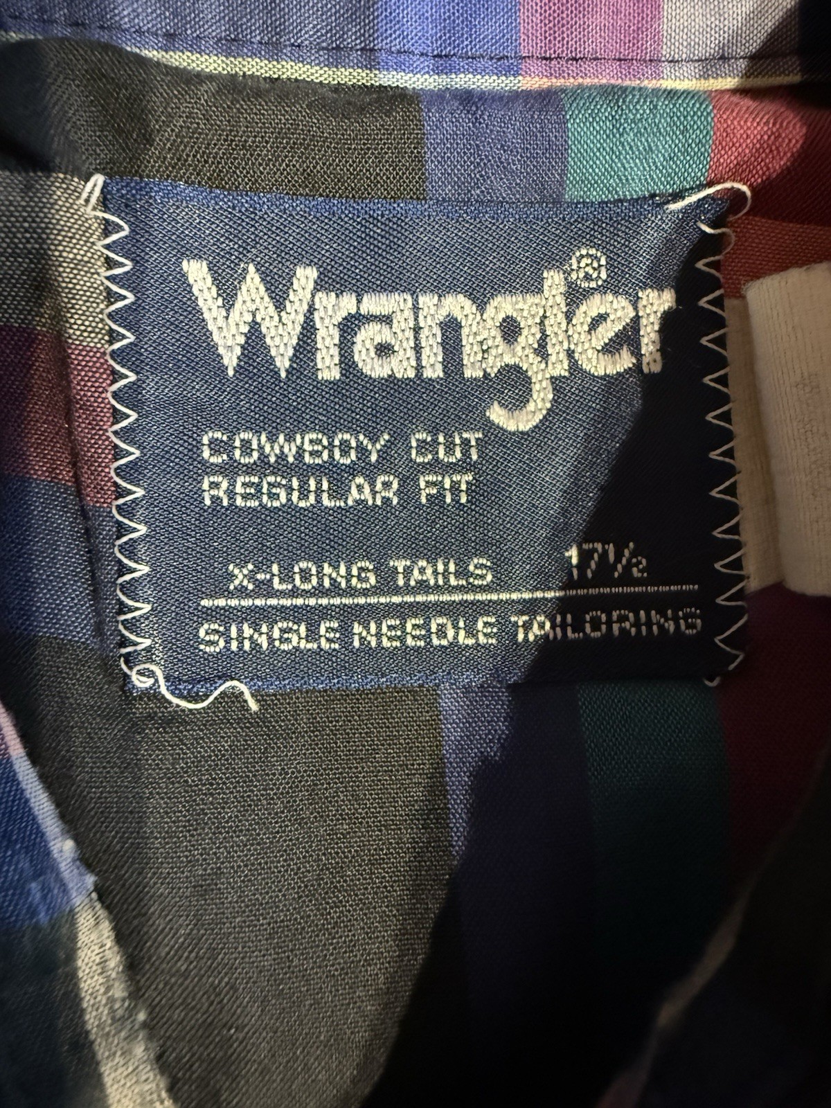 как выглядит Wrangler Cowboy Cut Shirt 17.5 Plaid Pearl Snap Western Vintage USA Made 90s фото