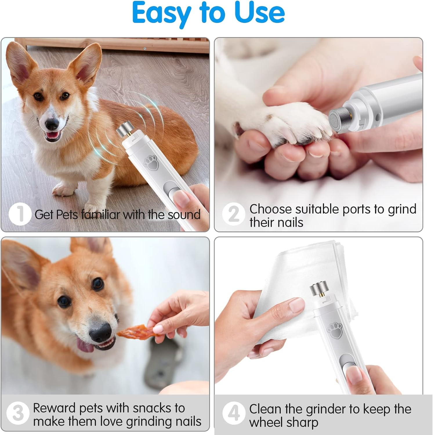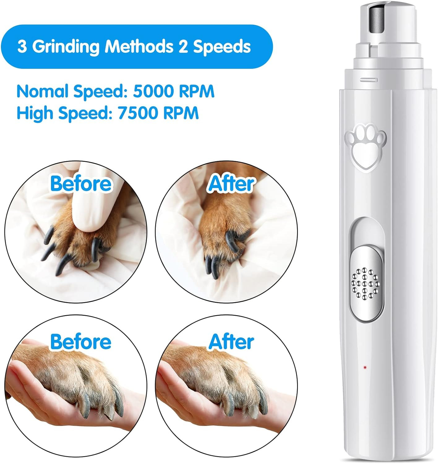 2-Speed Rechargeable Dog Nail Grinder - Quiet Puppy Grooming Tool Trimmer
