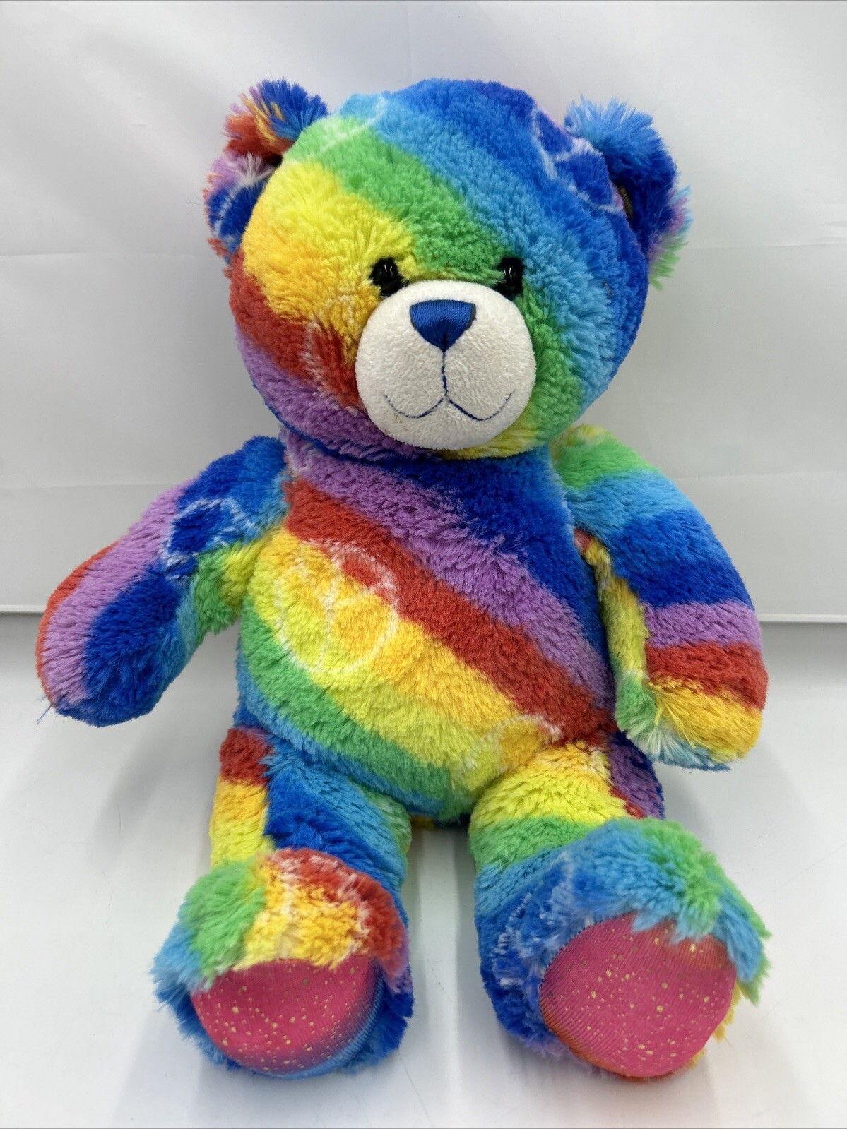 Build A Bear Rainbow Striped Rainbow Peace Pride Teddy Bear 14 Stuffed Plush