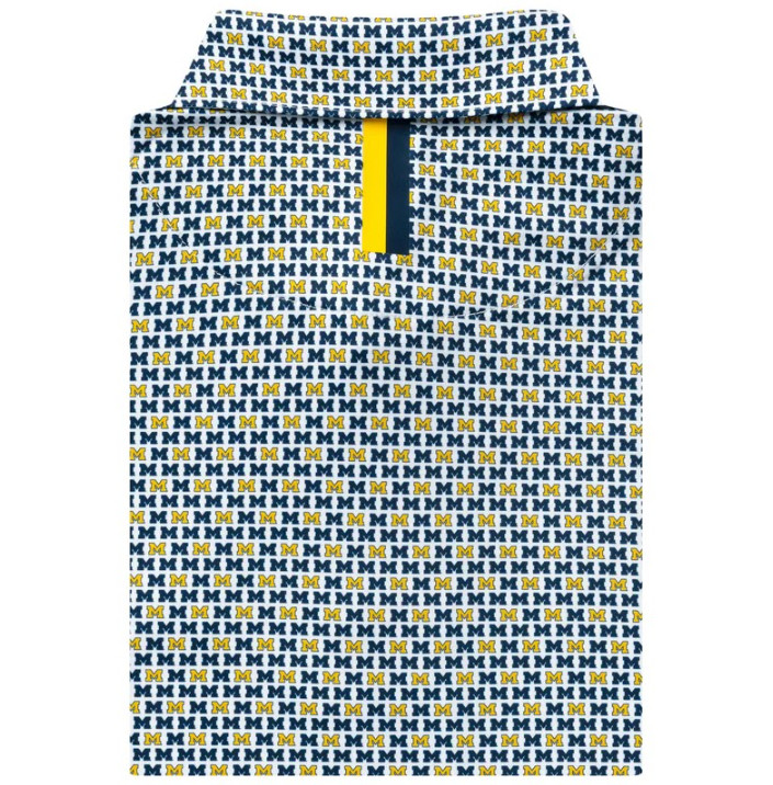HOT NEW Rhoback Michigan M Collegiate Polo Men's White Indigo Blue Athletic