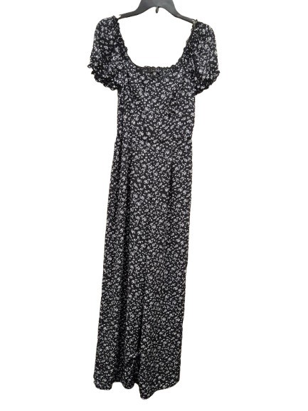 Black Floral Maxi Jump Suit Puff Sleeve Cottagecore Smocked Back Small