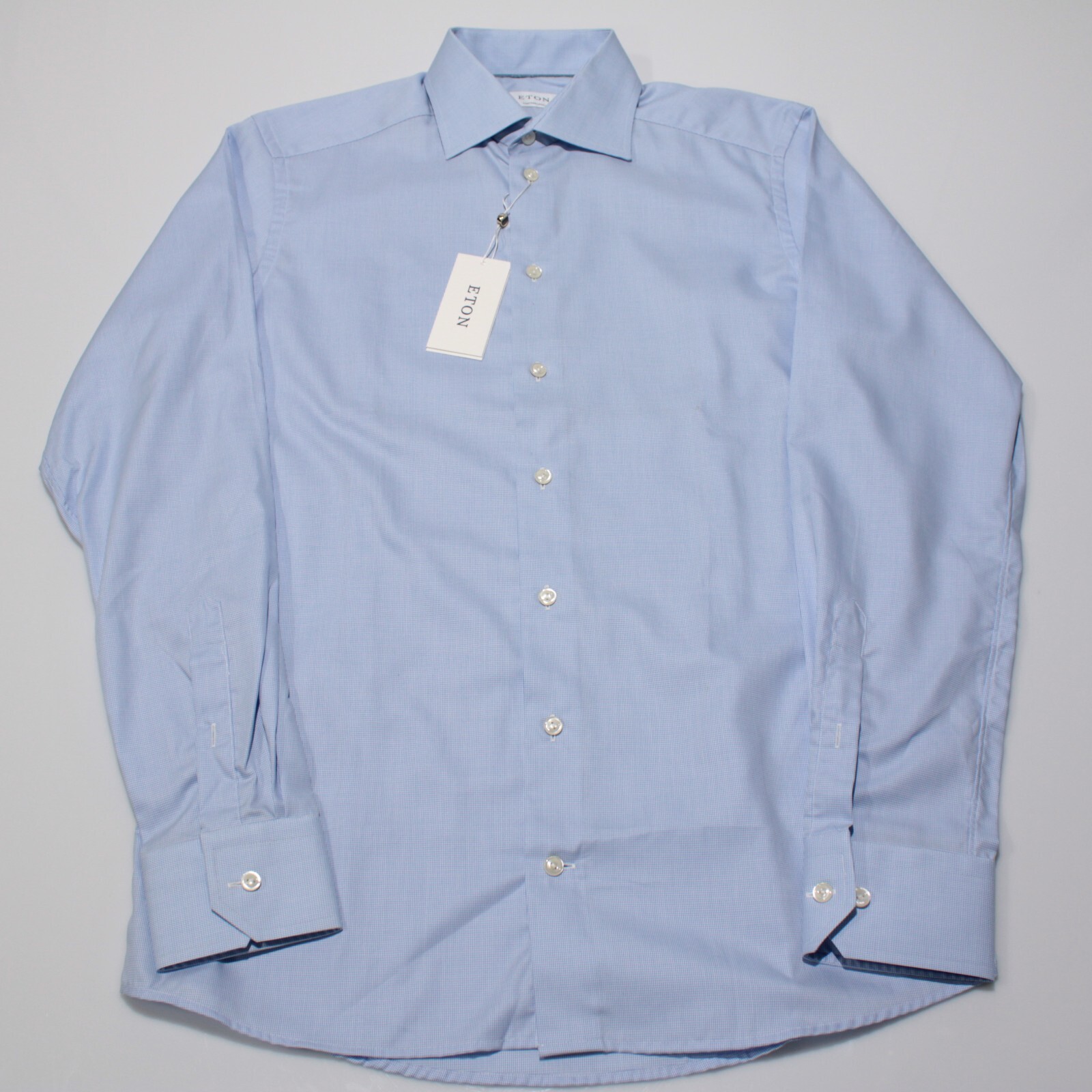 Eton NWD Dress Shirt Size 38 15 Contemporary Fit Roughly Solid Blue 100 Cotton