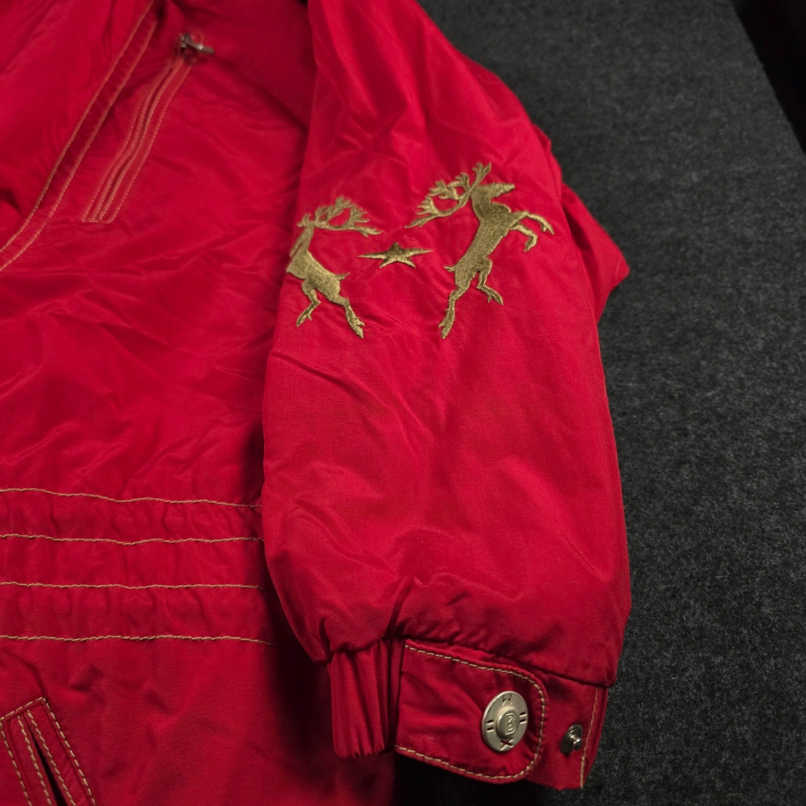 Vtg 80s Bogner Red Hooded Ski Jacket Reindeer Embroidery USA Made Womens Size 4