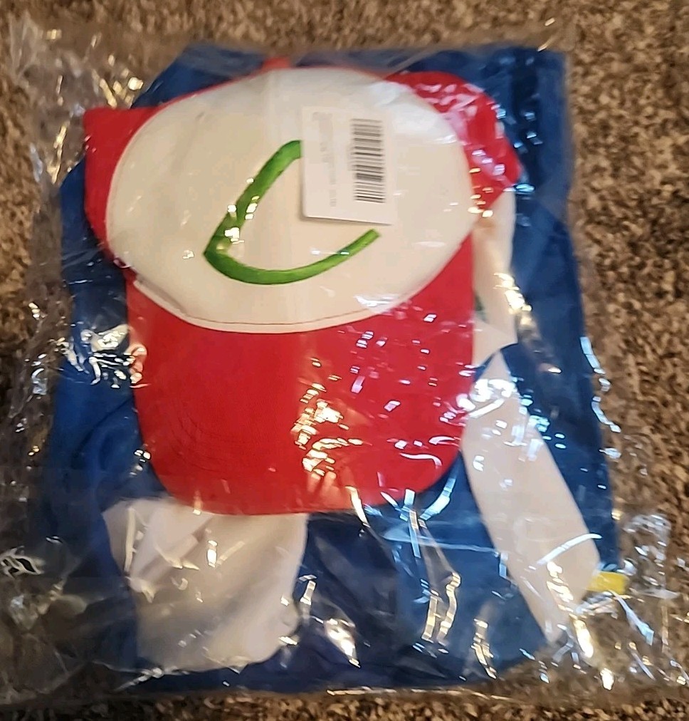Pokemon Ash Ketchum 3 Pc Kids Cosplay Costume with Shirt Hat Gloves Size L