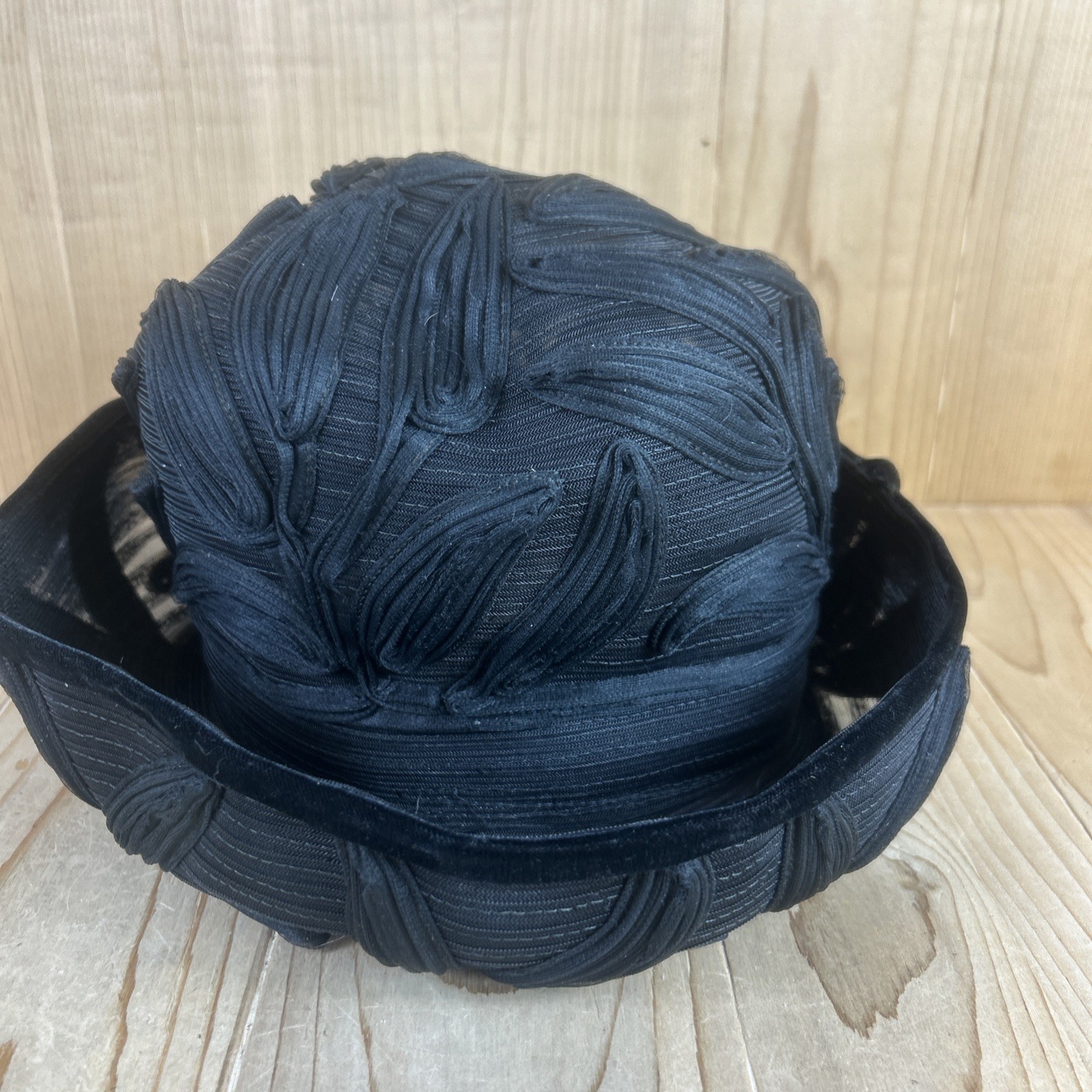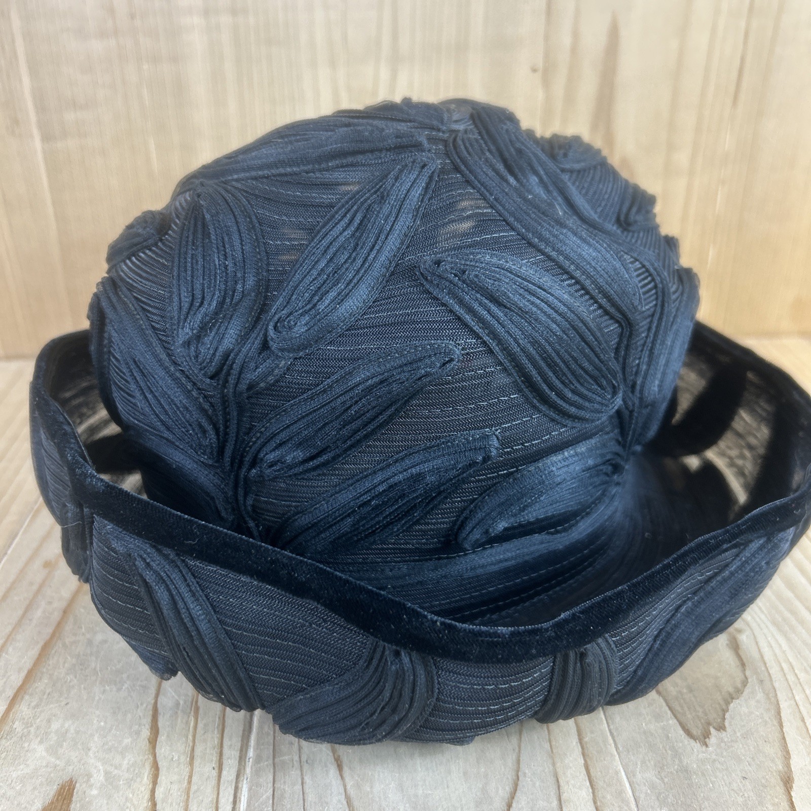 Mr John Jr Vintage Ladies Hat Black Flower Pattern USA Union Made 1960s