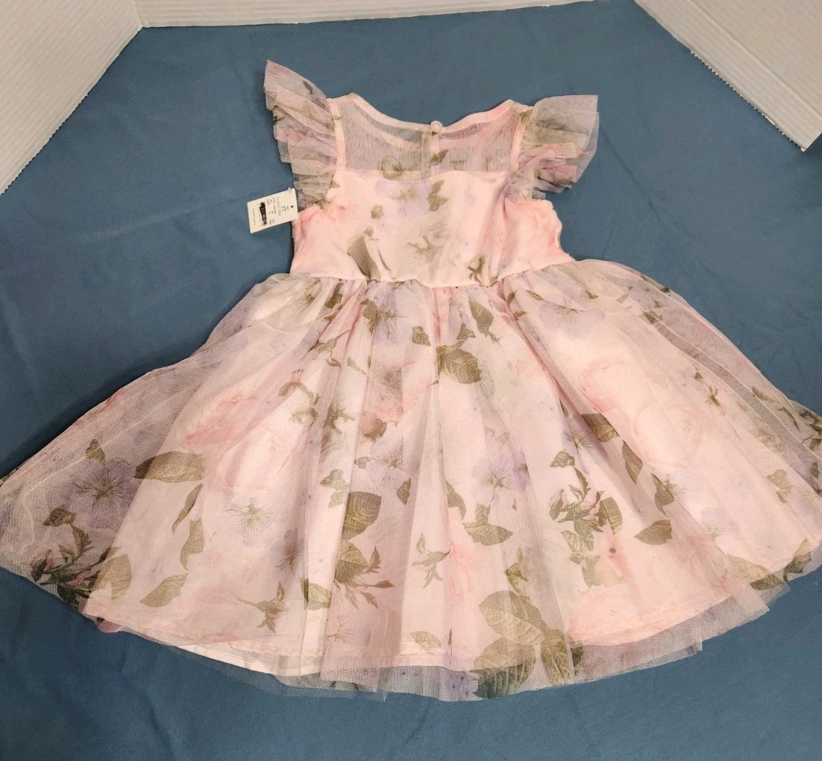 Toddler Girls Pink Floral Tulle Easter Party Dress