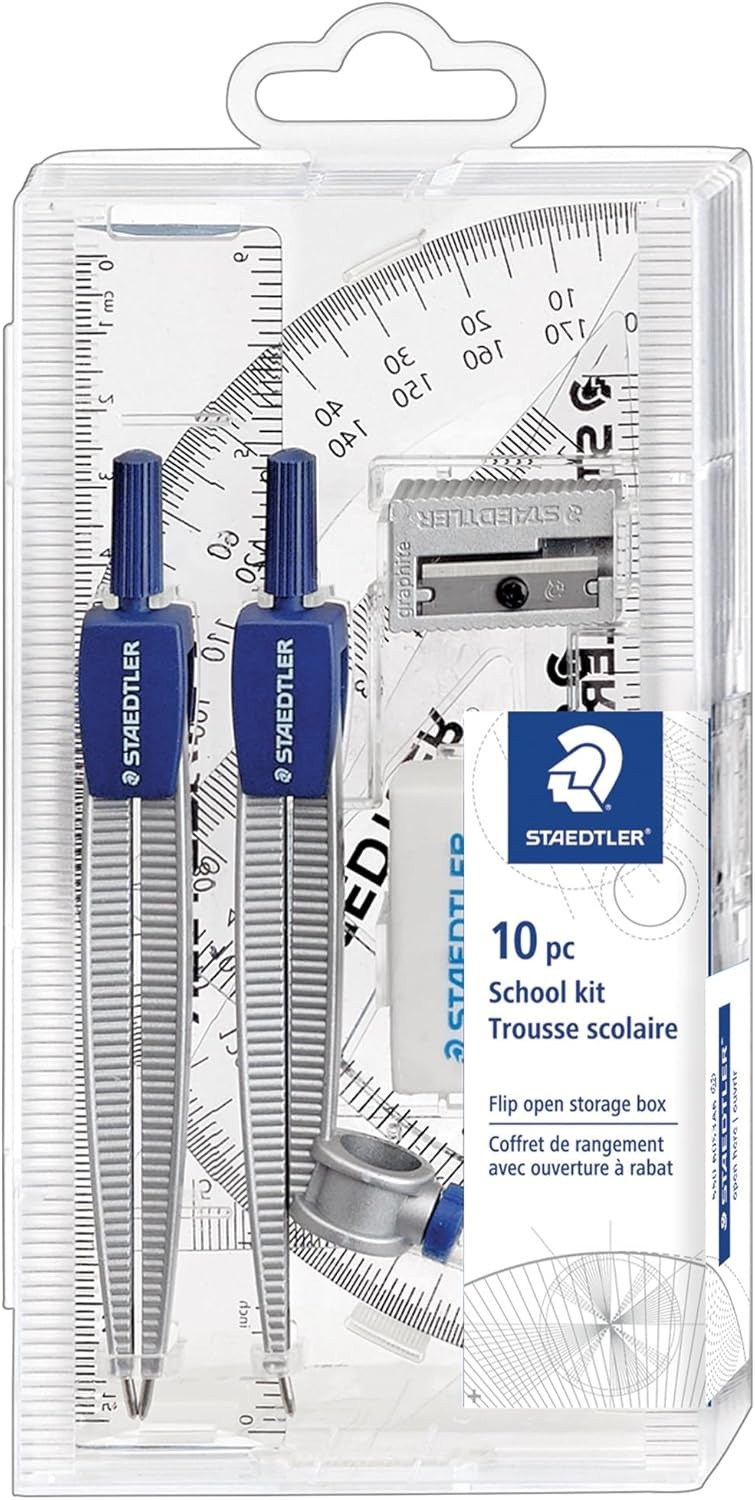 Complete Geometry Set 10 Piece with Compass Protractor Ruler Student Supplies