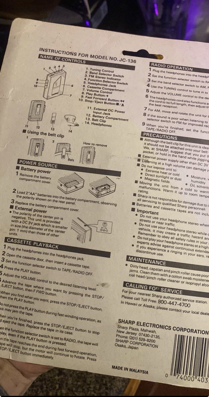 Sharp Cassette Player JC-136 R -B New In Box
