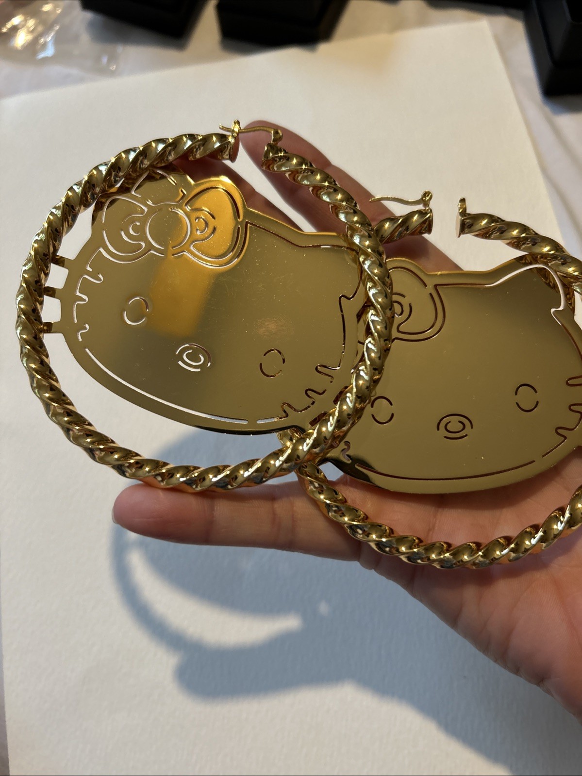 Very large gold plated high quality Hello kitty hoop earrings