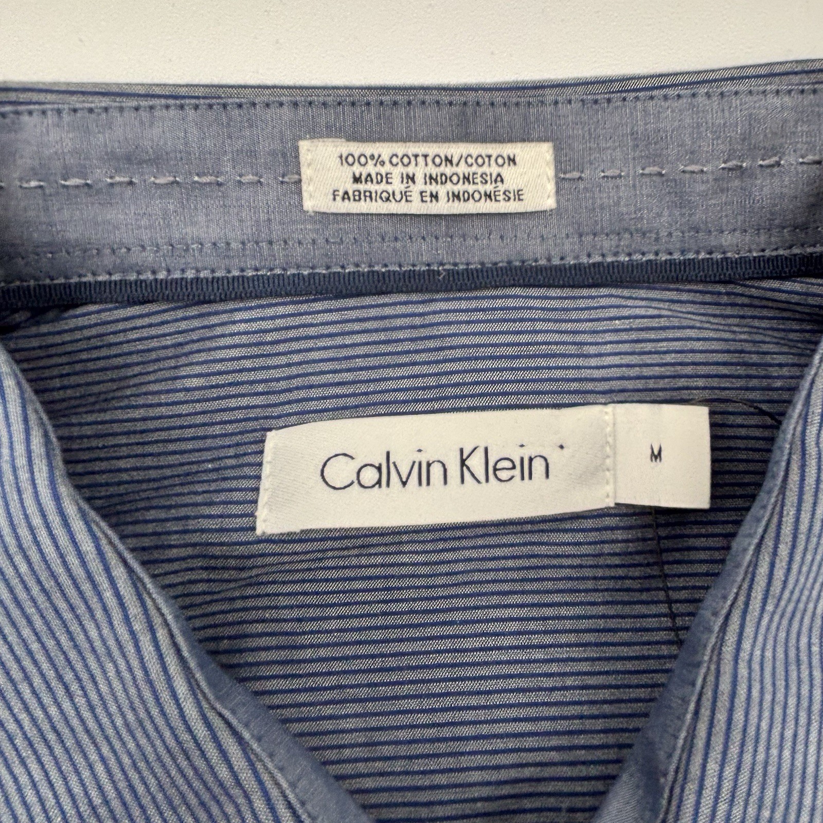 NWT Calvin Klein Men's Medium Dress Blue Striped Shirt Roll Tab Sleeve Cotton