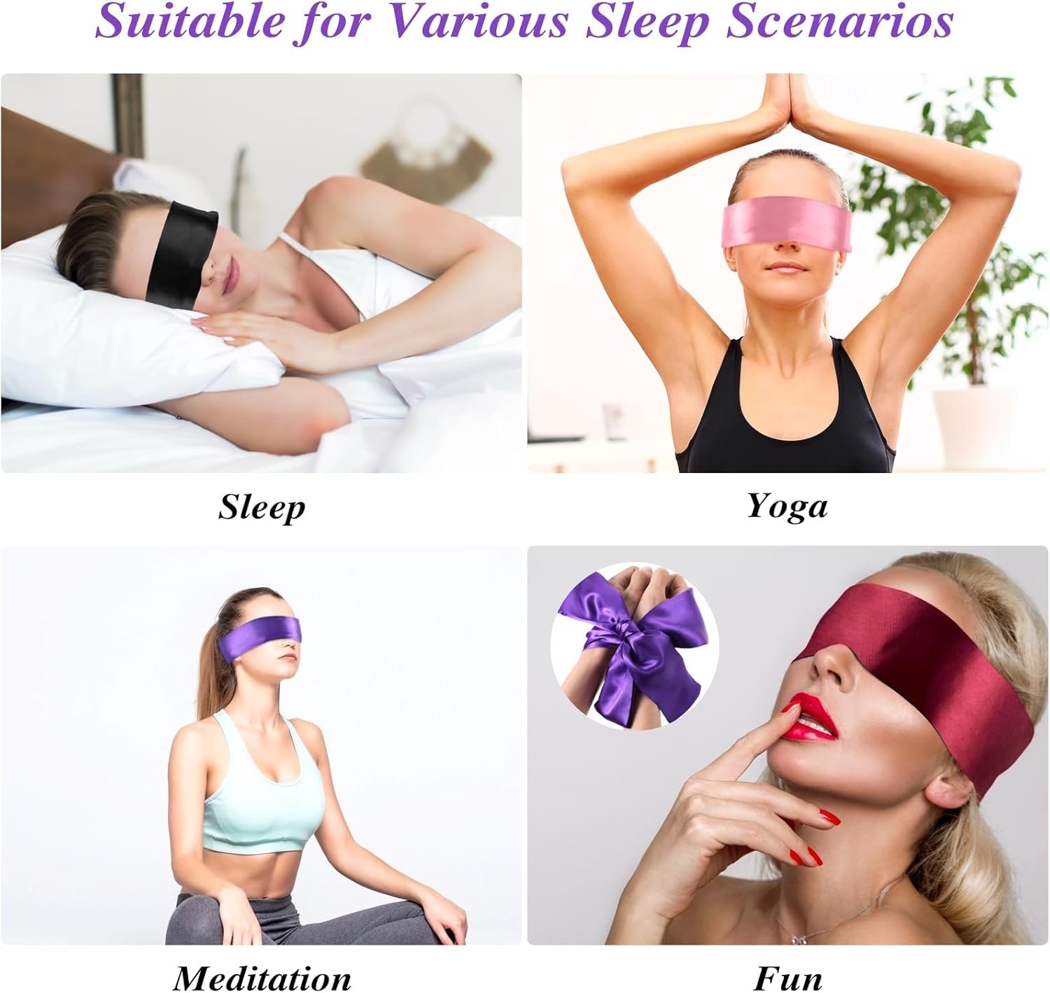 4pcs Blind Folds for Adult Play, Blockout Light Adjustable Eye Masks for Slee...