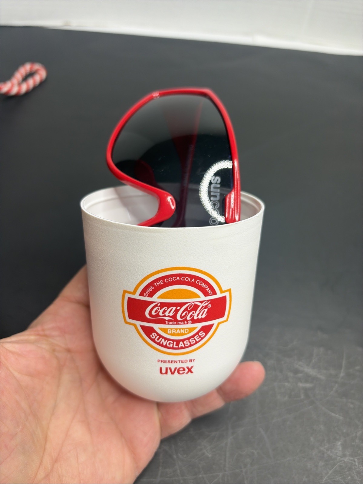 как выглядит Vintage Suncooler Uvex Coca Cola Sunglasses In Bill Capsule Case 1986 NOS фото