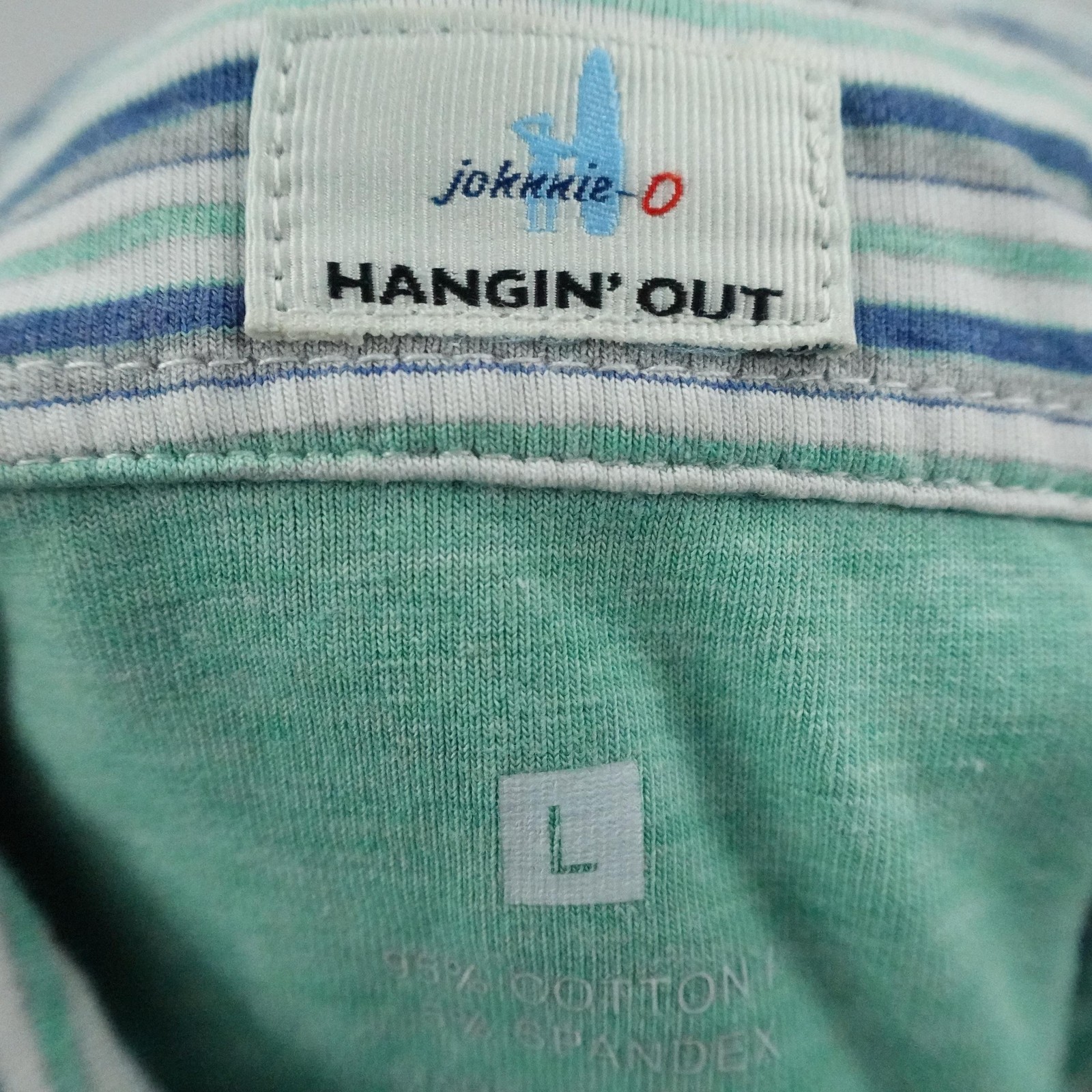 как выглядит Johnnie O Polo Shirt Mens Large Blue Green Gray Striped Performance Golf Surf фото