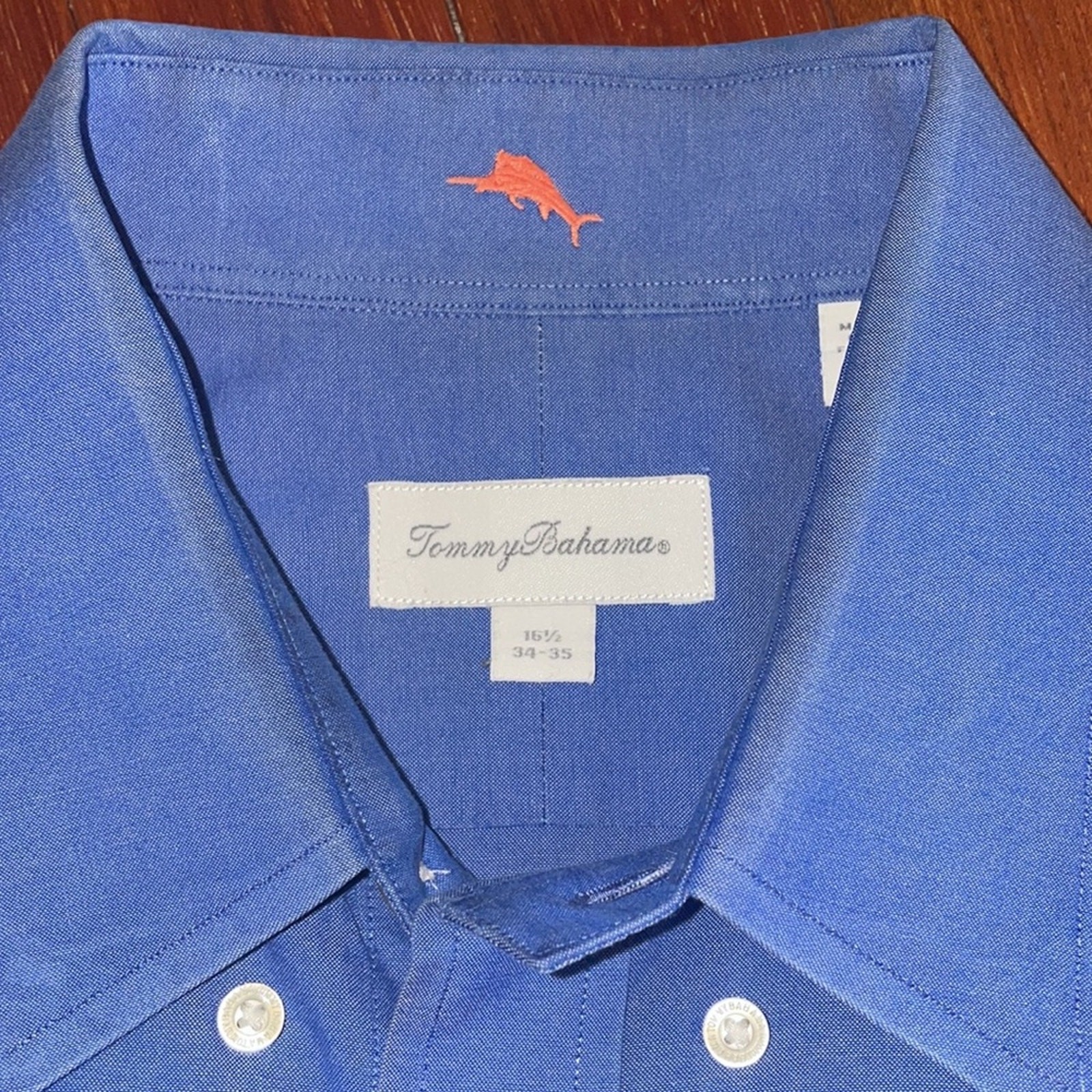как выглядит Tommy Bahama Blue Men s Dress Shirt 16 1/2 Button Down Shirt Preppy Basic Staple фото