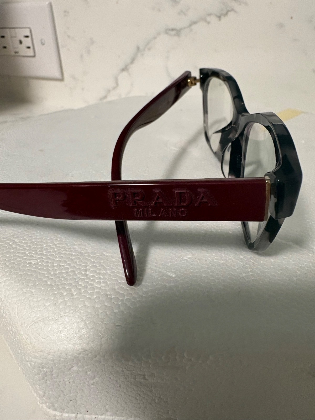 как выглядит Women s PRADA 03W-F eyeglass frame 53-16-140 color 510 black marble burgundy фото