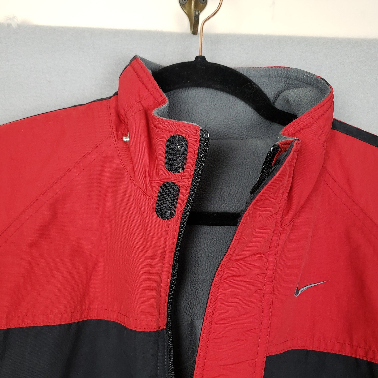 Vintage Nike Youth Size L Reversible Jacket Black Red Colorblock Sporty Winter