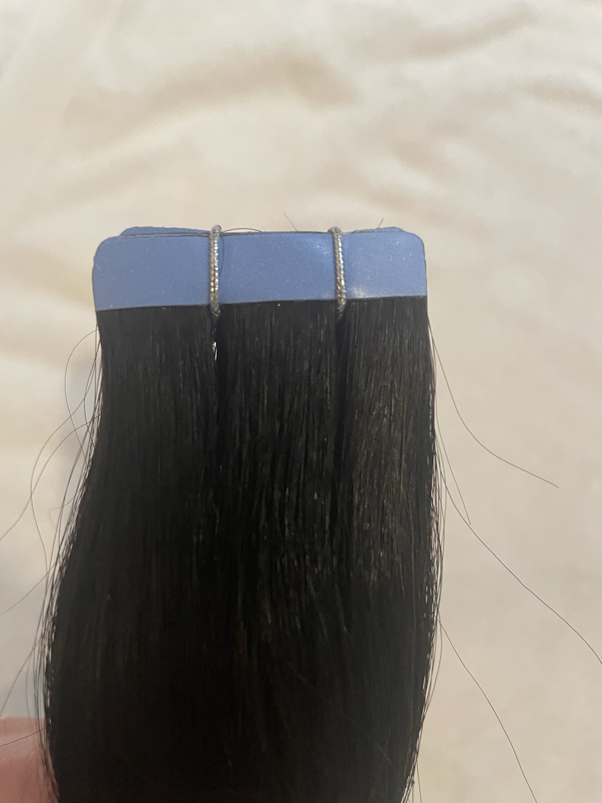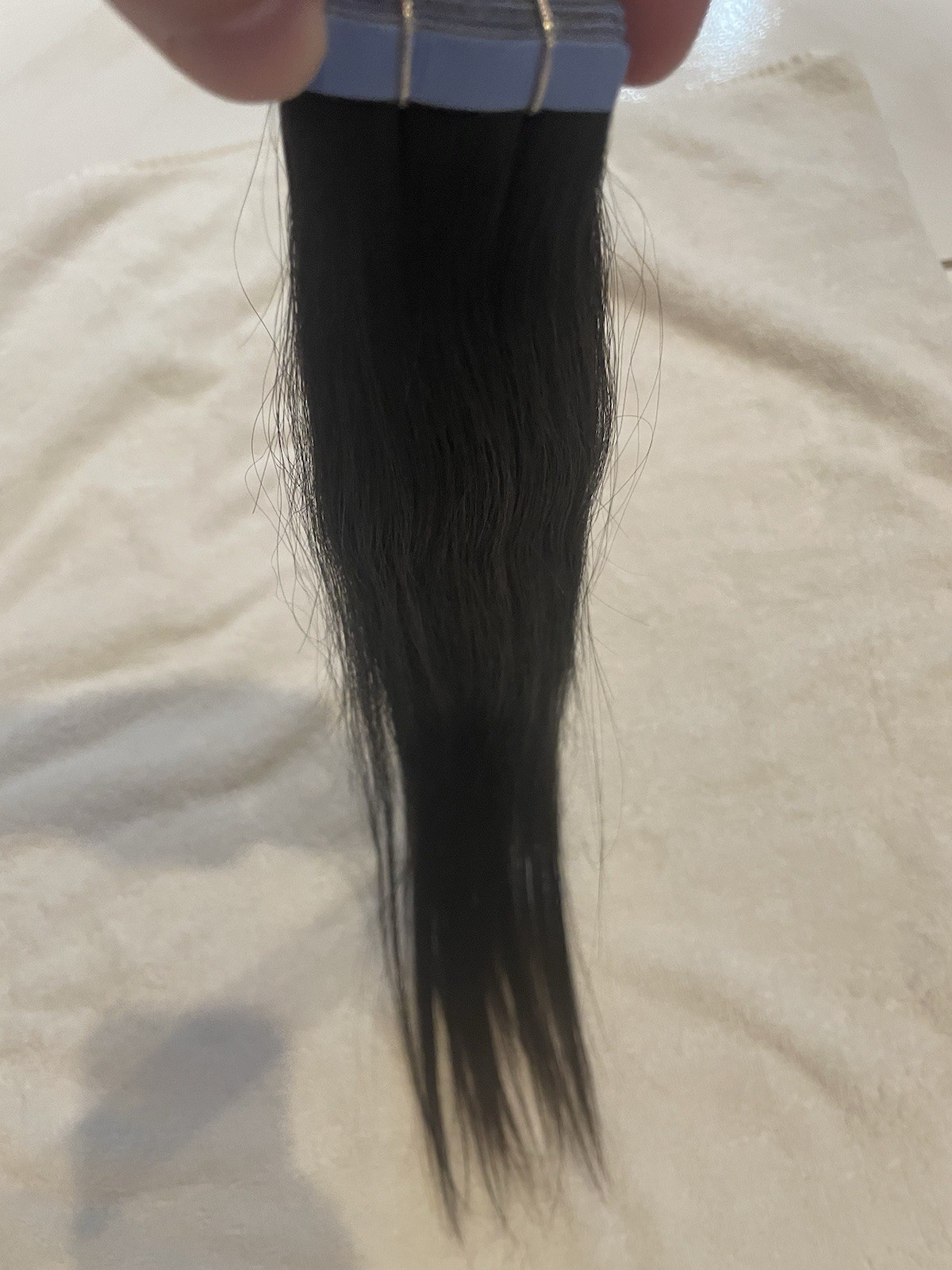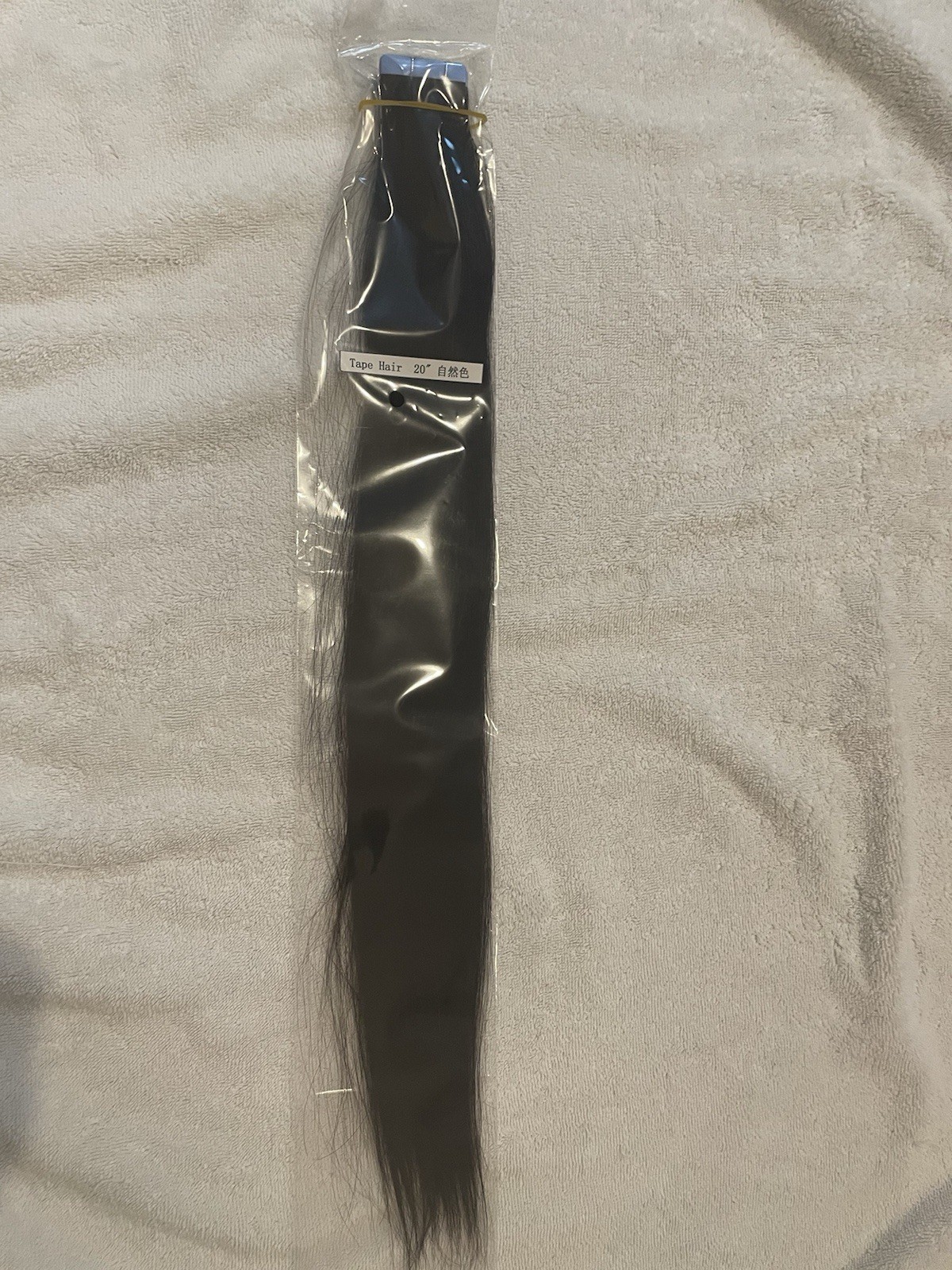 как выглядит Tape in Hair 20 Inch Extensions 100 Remy Human Hair Full Head 20 Pieces Black фото