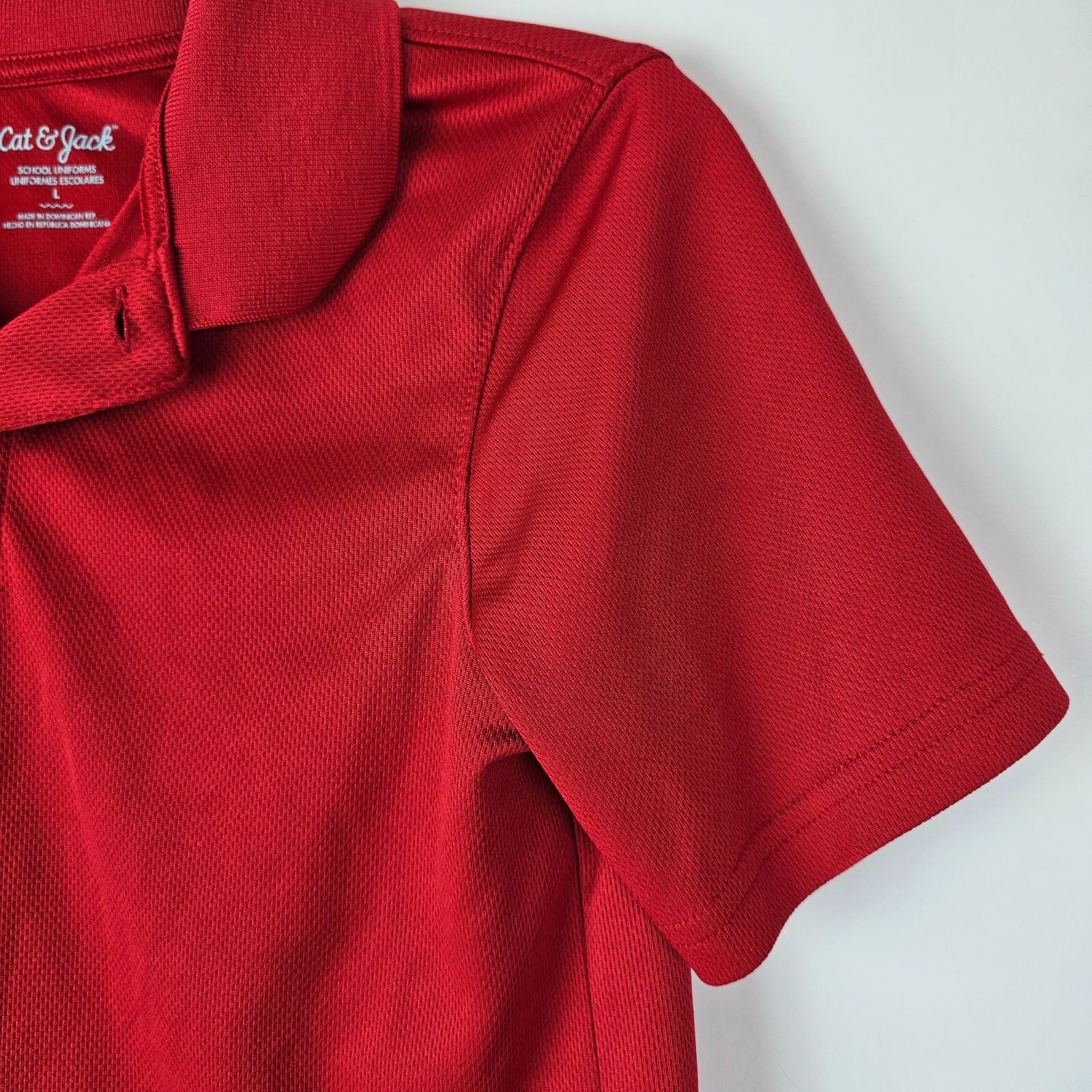 Cat Jack Boys Red Polo Shirt School Uniform Collared Pullover Size L Preppy