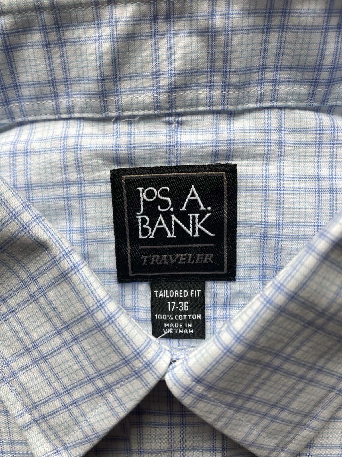 NWT Jos A Bank Traveler Tailored Fit Blue White Check Cotton Mens 17-36 Shirt