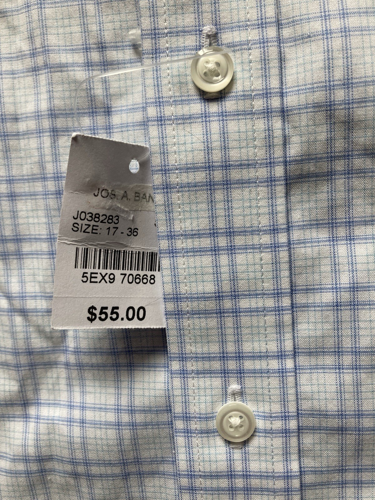 как выглядит NWT Jos A Bank Traveler Tailored Fit Blue White Check Cotton Mens 17-36 Shirt фото