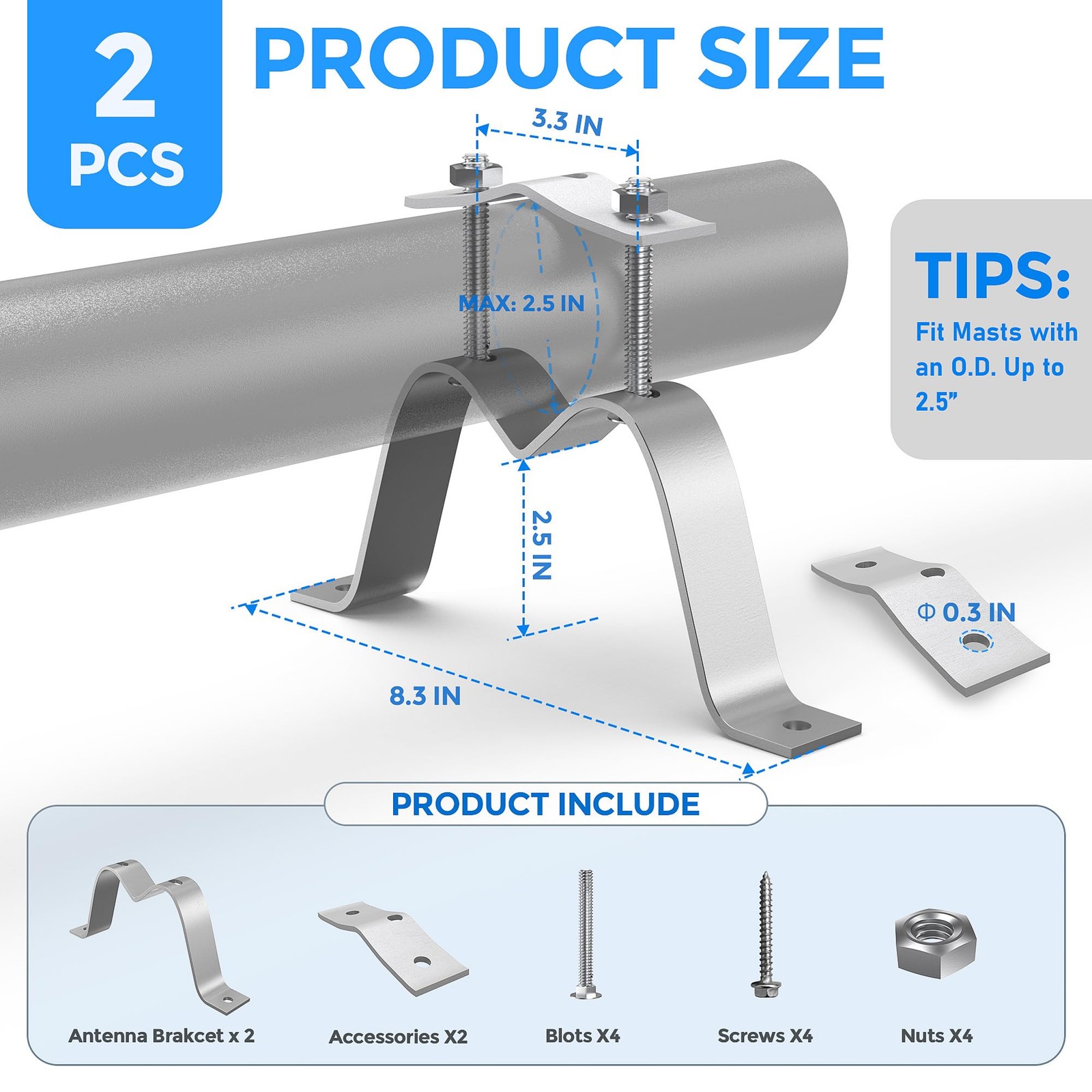 Included Components: Wall Mount Antenna Mast Brackets